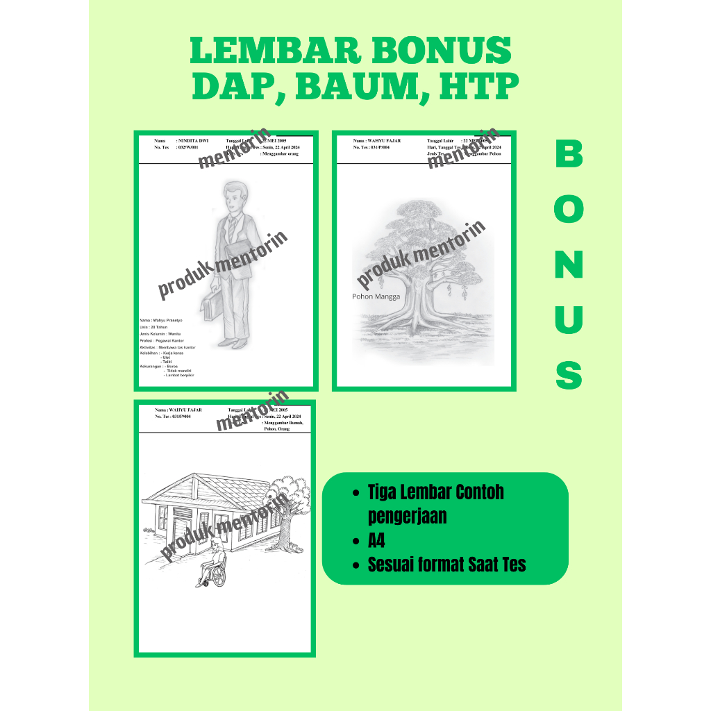 Kertas tes Psikotes menggambar orang, menggambar pohon, menggambar rumah pohon orang