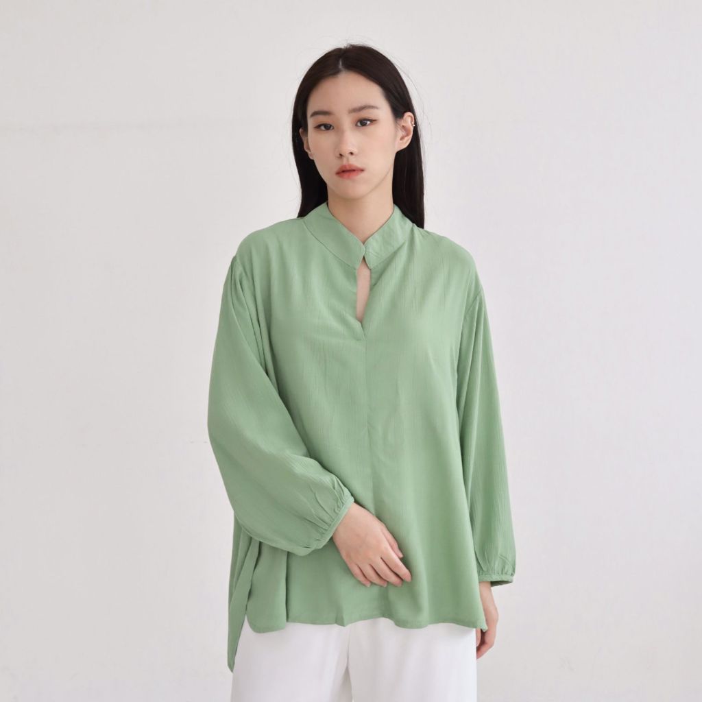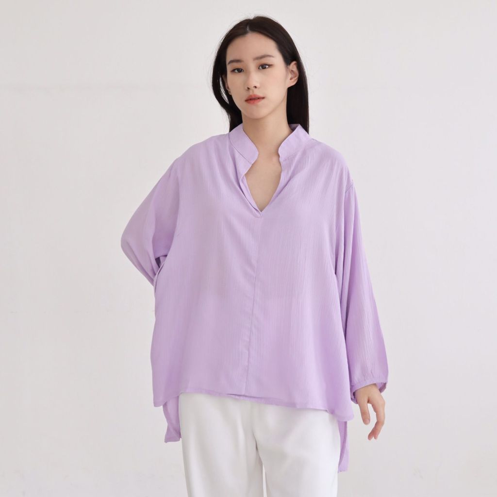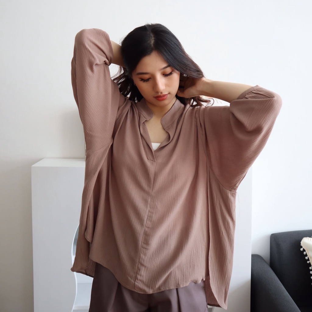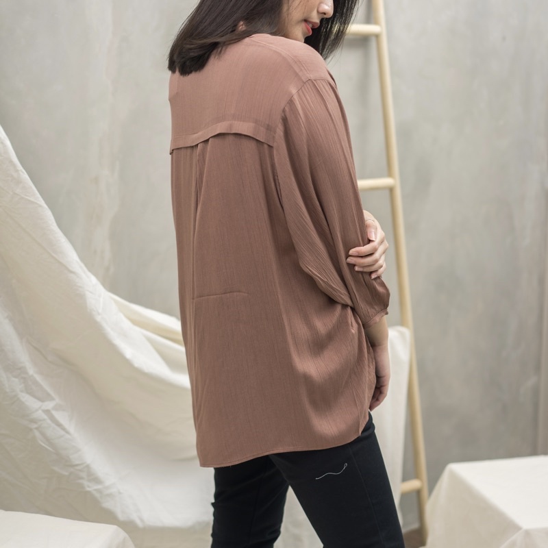 MSMO Sakura Vneck Shirt Blouse Kemeja Oversize / Kemeja Kantor / Kemeja Korea / Kemeja Oversized / Atasan Wanita