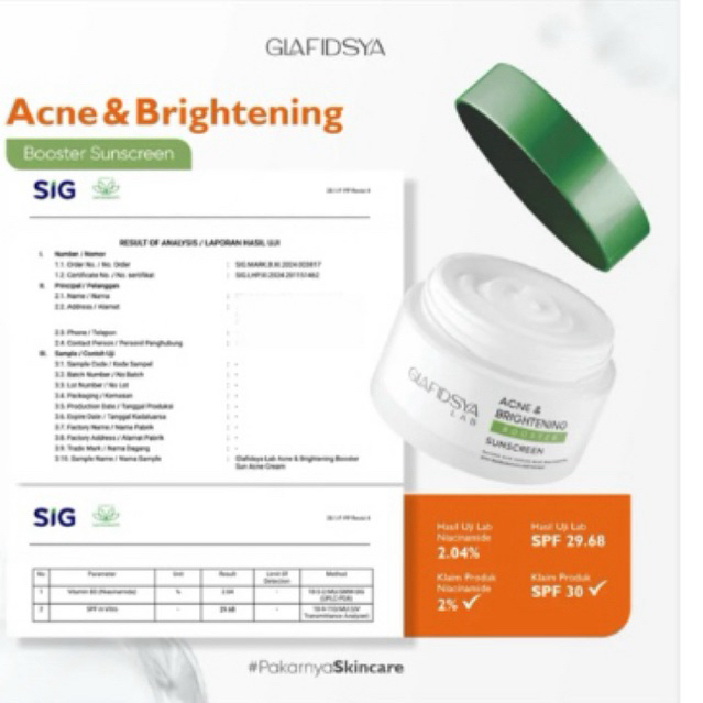 GLAFIDSYA LAB - (Dapat 1) KEMASAN BARU TUTUP HIJAU SUNSCREEN ACNE &BRIGHTENING BOOSTER