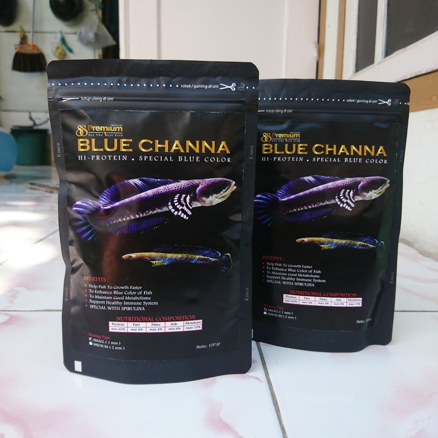 Pelet Premium Blue Channa 100g Pakan Chana Cana Andrao Pulchra