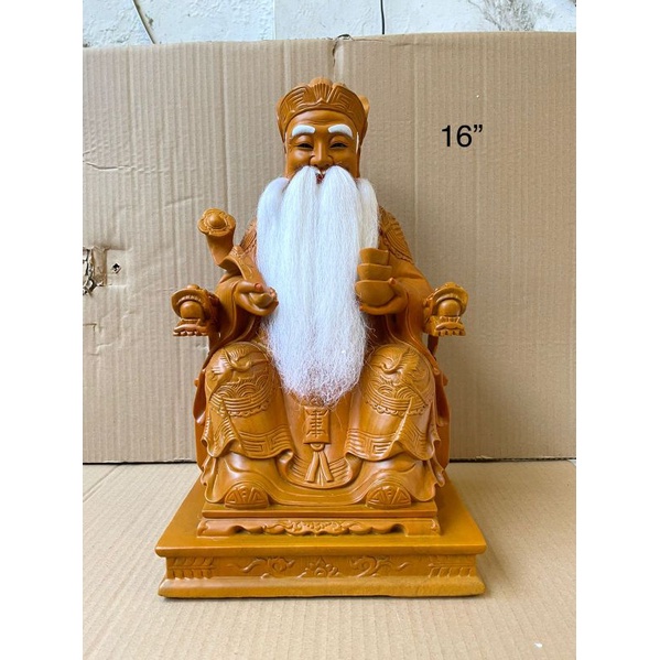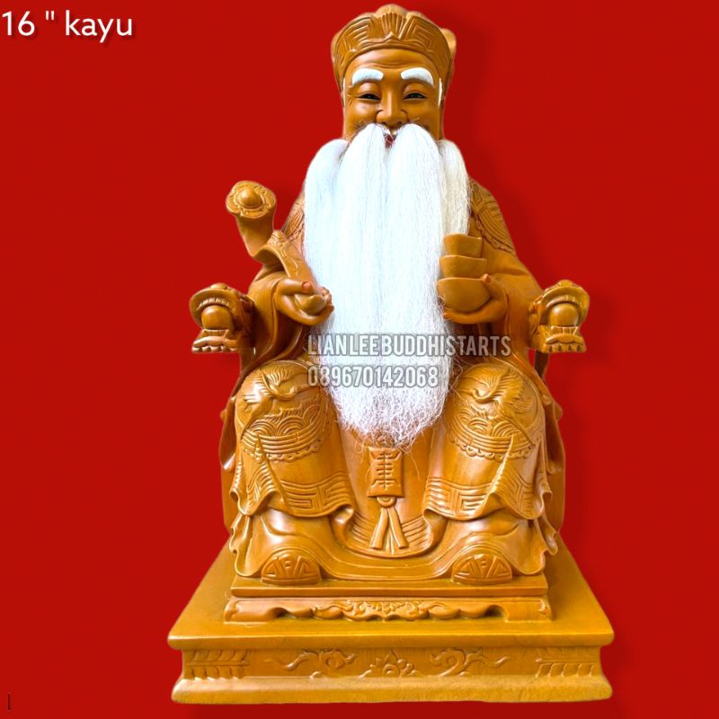 patung dewa bumi dan rejeki hok tek cen sin full kayu 16 inch
