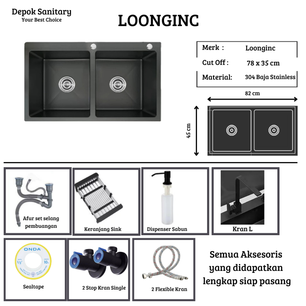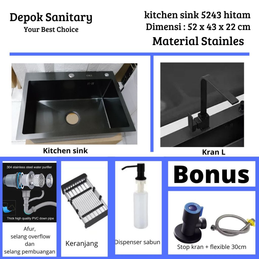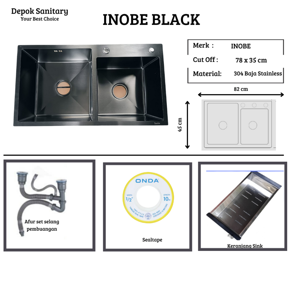 Kithen sink hitam Black 8245 JKM/INOBE/OMON/OKI/LG Bak cuci piring hitam
