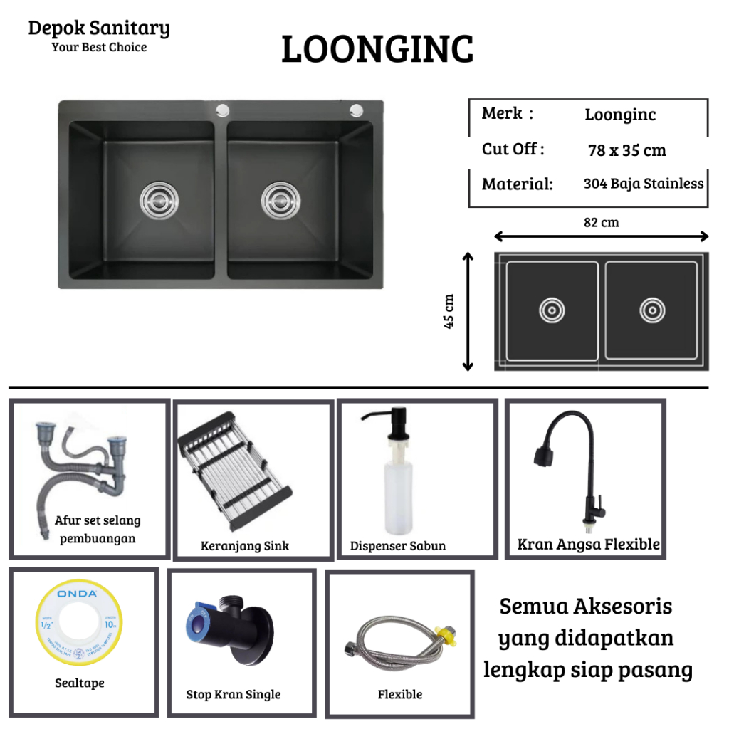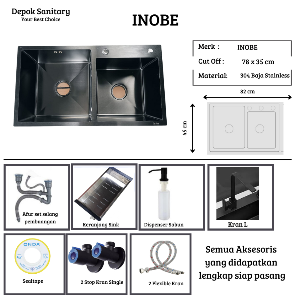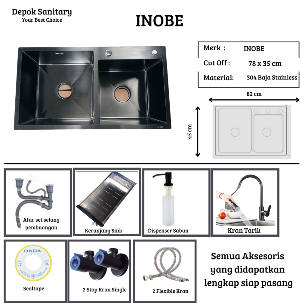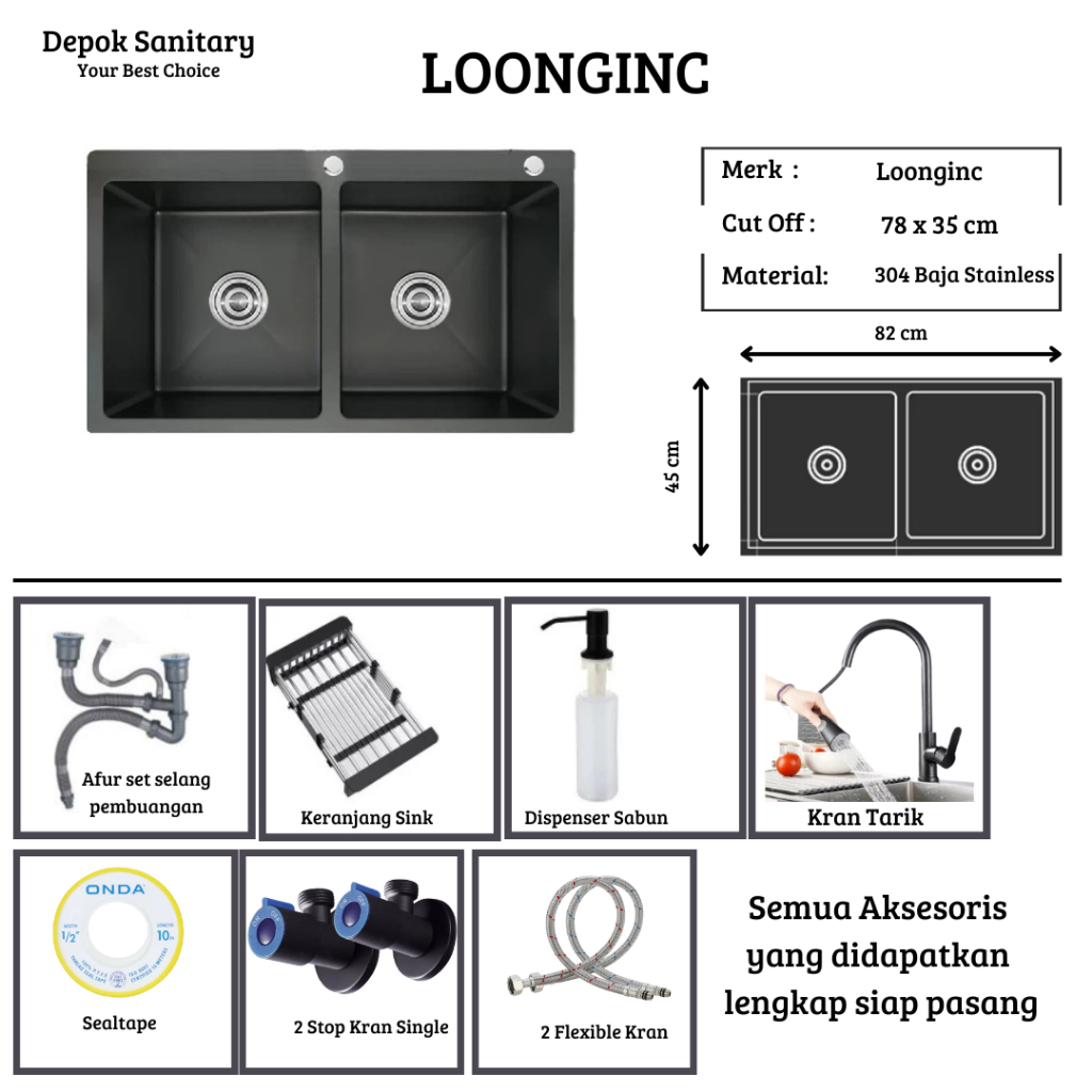 Kithen sink hitam Black 8245 JKM/INOBE/OMON/OKI/LG Bak cuci piring hitam