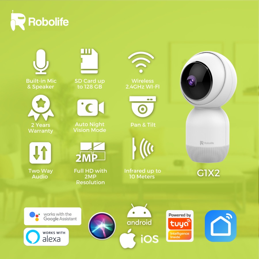 Robolife Wifi Smart Indoor P/T Camera 2MP - G1X2