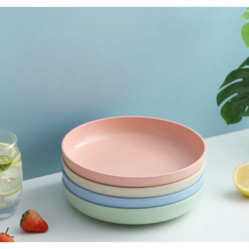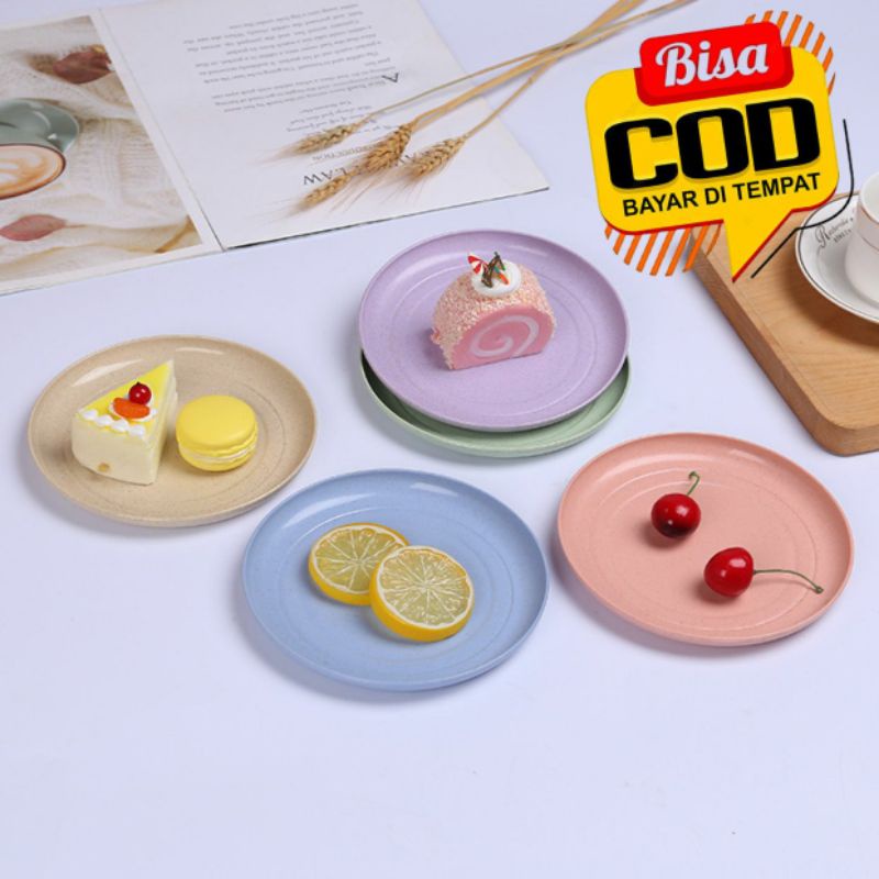 Piring saji kecil - piring buah - piring sayur - piring kue - piring dessert - piring bulat -piring plastik anti BPA bahan Wheat straw , anti pecah , anti lengket 1112store
