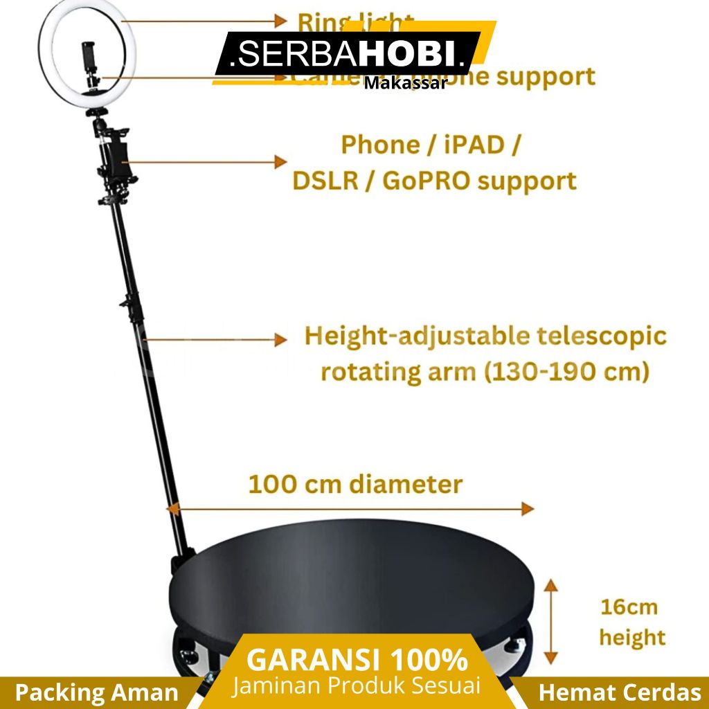 Video Booth 360 Putar Elektrik 100cm – Paket Lengkap, Muat 4-5 Orang, Full Aksesoris