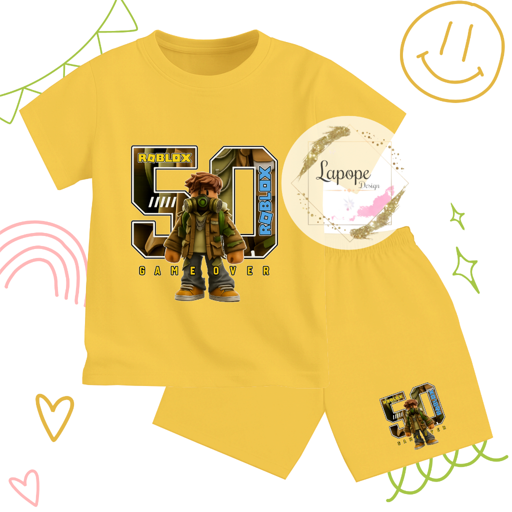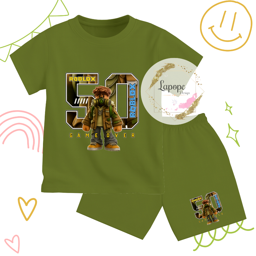 Setelan Anak Cowok Cewek Gambar Karakter Terbaru Trending ROBLOX GASMASK