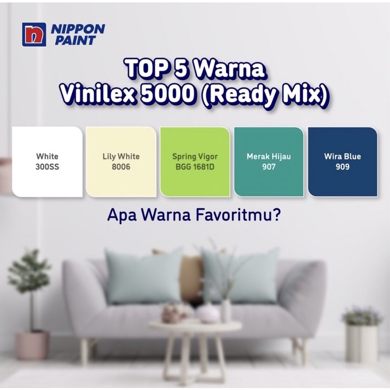 Cat VINILEX Nippon Paint Interior & Exterior 5 KG Galon Warna Ready Mix Pabrik Bukan Tinting