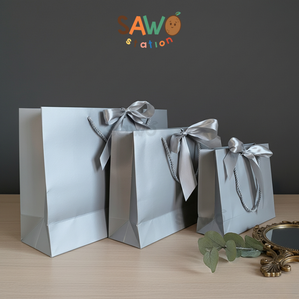 Paper Bag Silver Termasuk Pita | Elegant Plastik Kado Kantong Kertas Bingkisan Hadiah