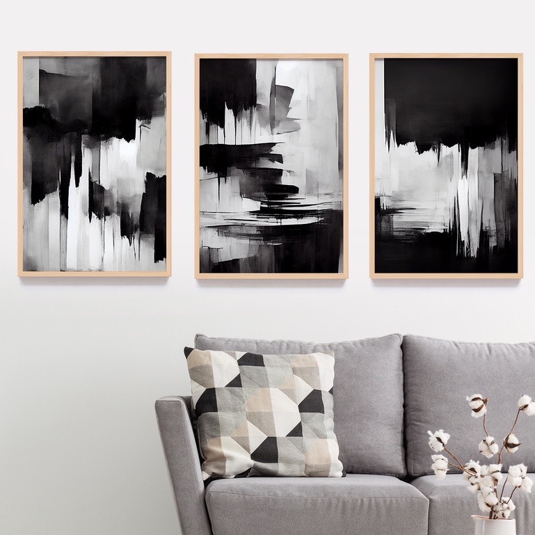 Lukisan Print Abstrak Hitam Putih, Monocrome Printed Painting, Art Printing Untuk Dekorasi Rumah Vila