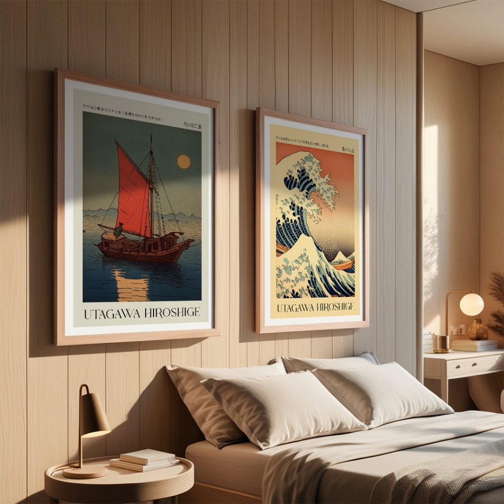 Lukisan Print Design Woodcut Jepang Utagawa Hiroshige Wall Decor Cafe