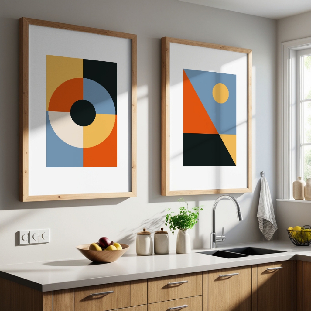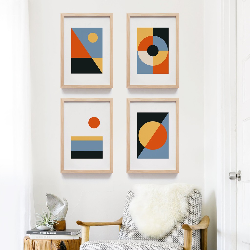 Pajangan Dinding Aesthetic Mid Century Simple Elegan Abstrak Minimalis Frame Kayu - Wall Decor