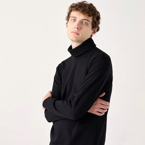 UNIQLO Kaos Long John Pria Heattech Ultra Warm Turtle Neck Black