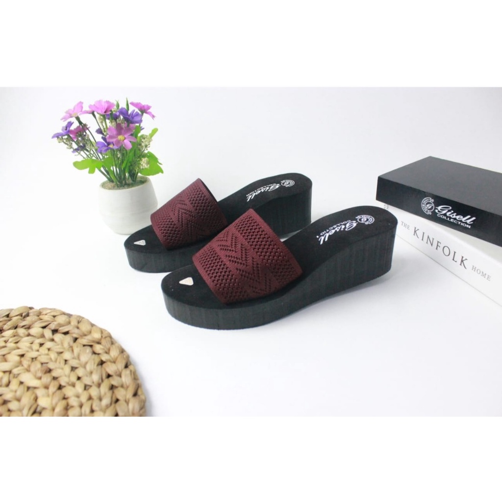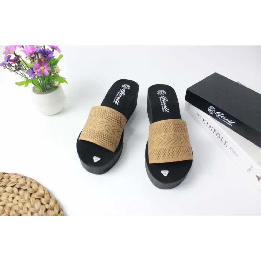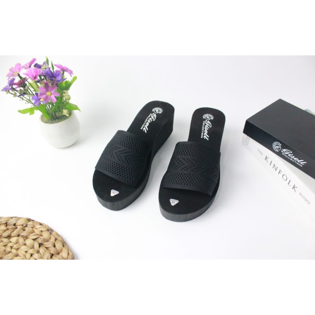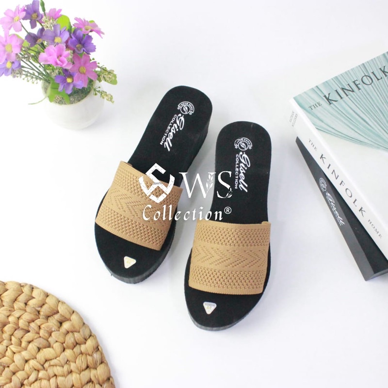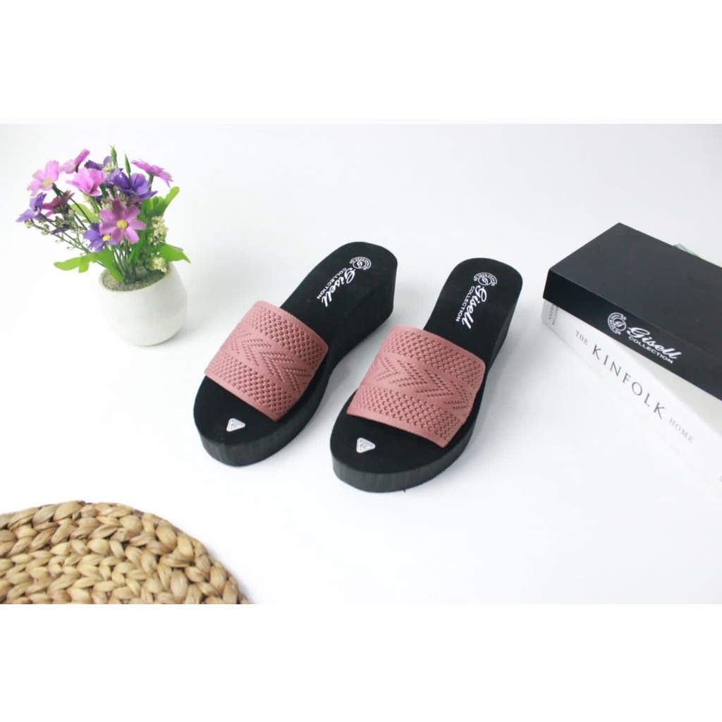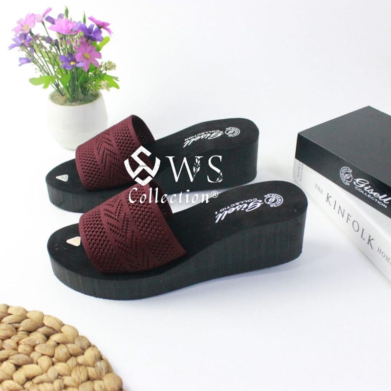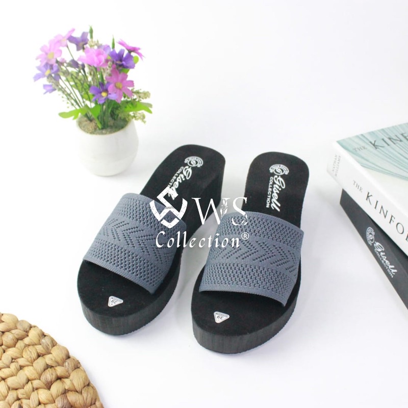 WS Collection Sandal Wedges Wanita Slop Rajut Terbaru