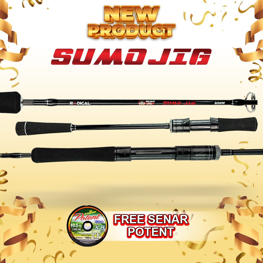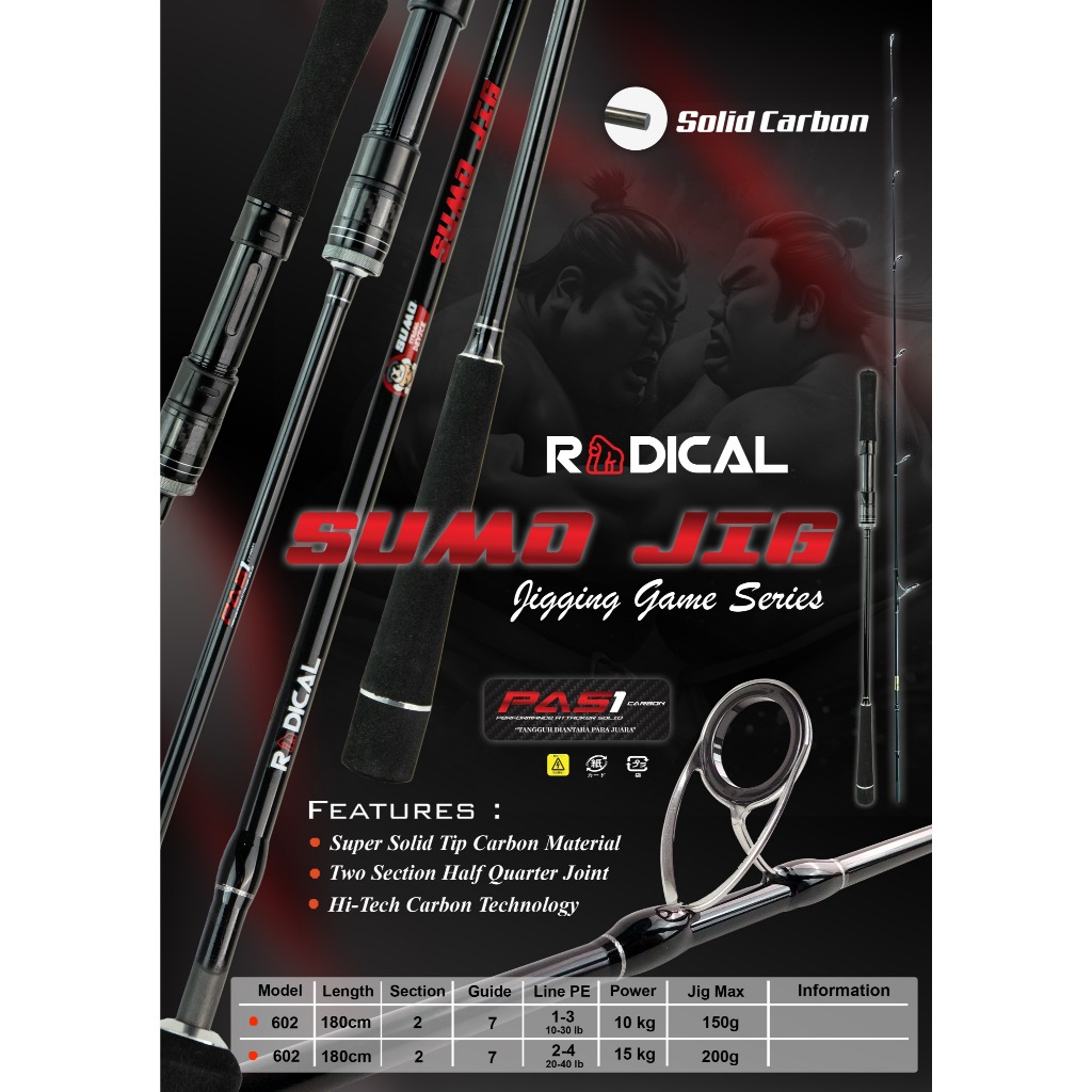 FREE SENAR PE - RADICAL Joran Pancing Spinning SUMO JIG 1.8M PE1-4 Solid Carbon Joran Jigging