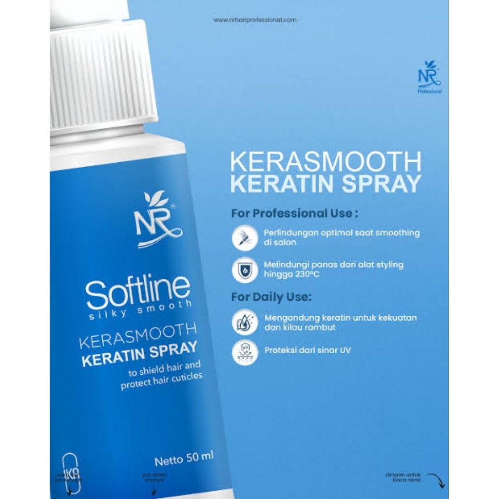 NR SOFTLINE Silky Smooth Kerasmooth Keratin Spray 50ml - Perlindungan Perawatan Rambut Rusak dan Bercabang