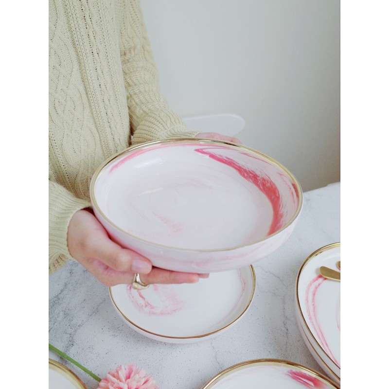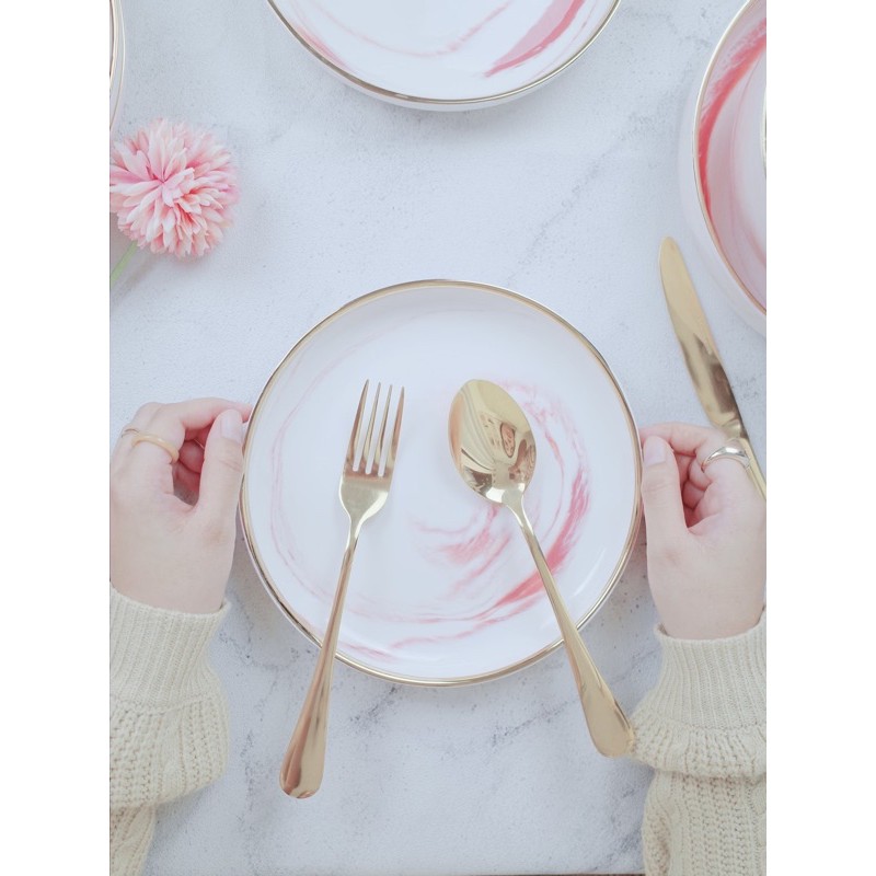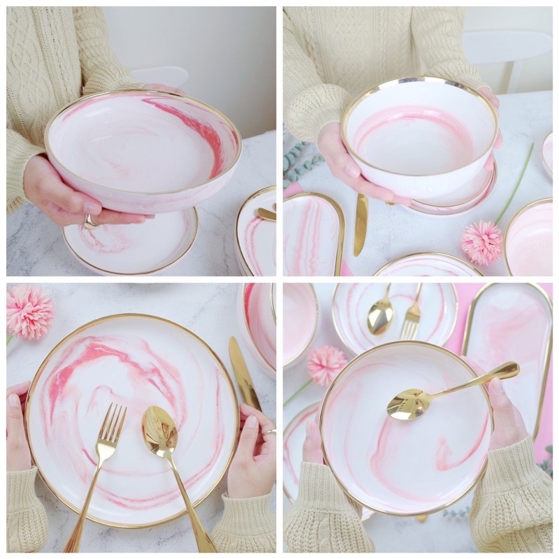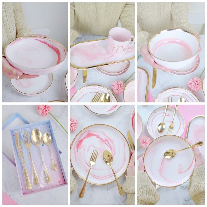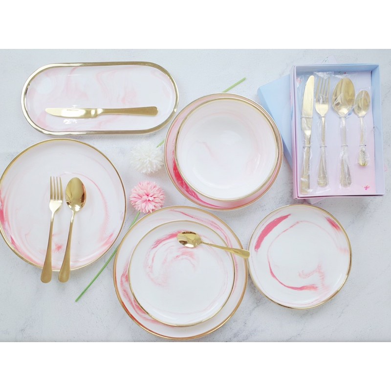 Marble Pink Plate / Bowl / Deep Plate / Tray / Cutlery Set