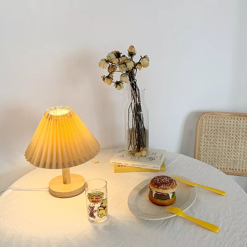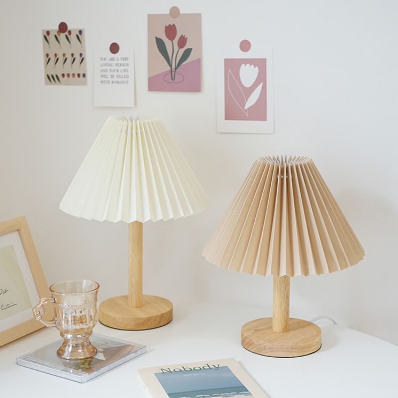 READY KOREAN RETRO PLEATED LAMP VINTAGE LAMPU LIPIT KOREA LAMPU TIDUR AESTHETIC LAMPU MEJA KAYU MINIMALIS SIDE LAMP