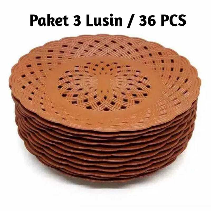 PAKET 3 LUSIN 36 PCS Piring Rotan Plastik Tebal / Piring Anyaman Plastik