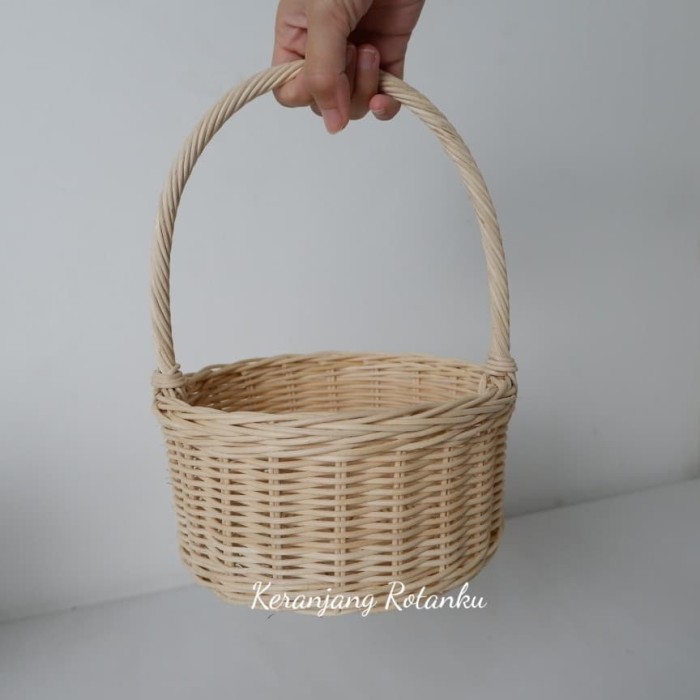 Keranjang Rotan Lingkaran Tangkai
