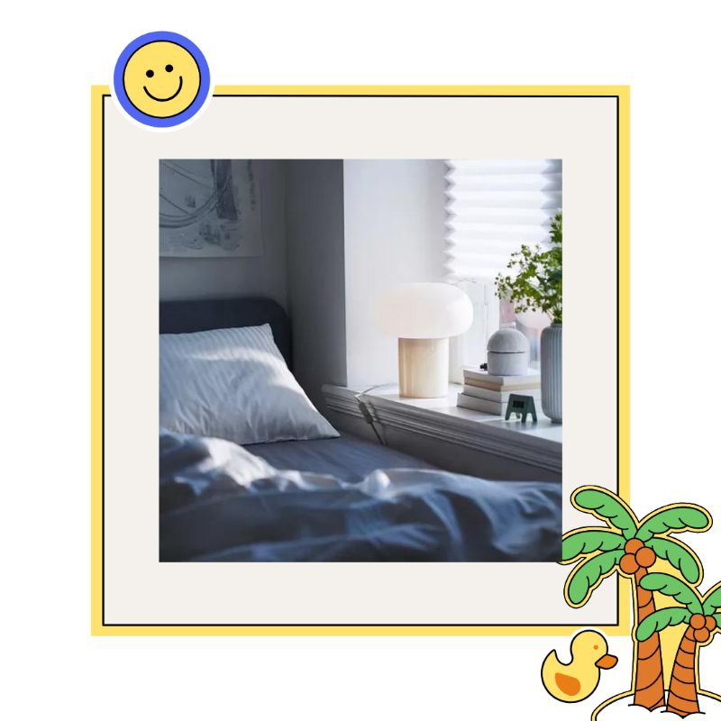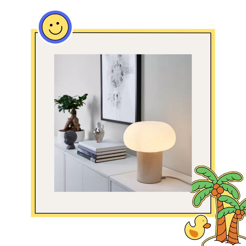 IKEDEJSA Lampu meja, krem/putih opal kaca, 28 cm.