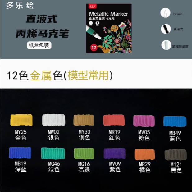 DOLOHA Acrylic Marker Metallic / Basic Color Soft Tipped - Spidol Akrilik Alternatif DSPIAE HobbyMio Mr Hobby Tamiya