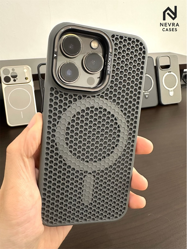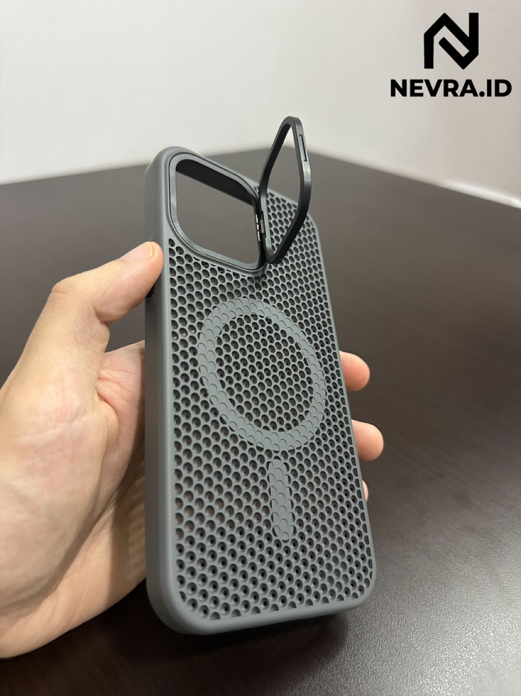 NEVRA Cooling Mesh Lens Stand Case - Casing Jaring Anti Panas dengan Bracket Kamera MagSafe IPHONE 11 12 13 14 15 16 17 AIR PRO MAX