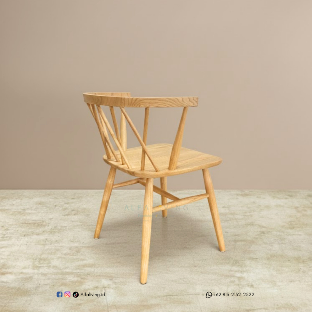 ALFA LIVING Merbabu - Kursi Makan Minimalis/Cafe Dining Chair, Kursi Tamu Teras Kayu Sungkai Modern