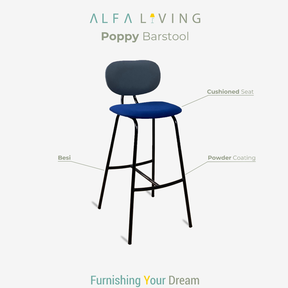 ALFA LIVING Poppy - Kursi Bar/Barstool, Kursi Counter Minimalis, Kursi Tinggi Besi Empuk Cushion
