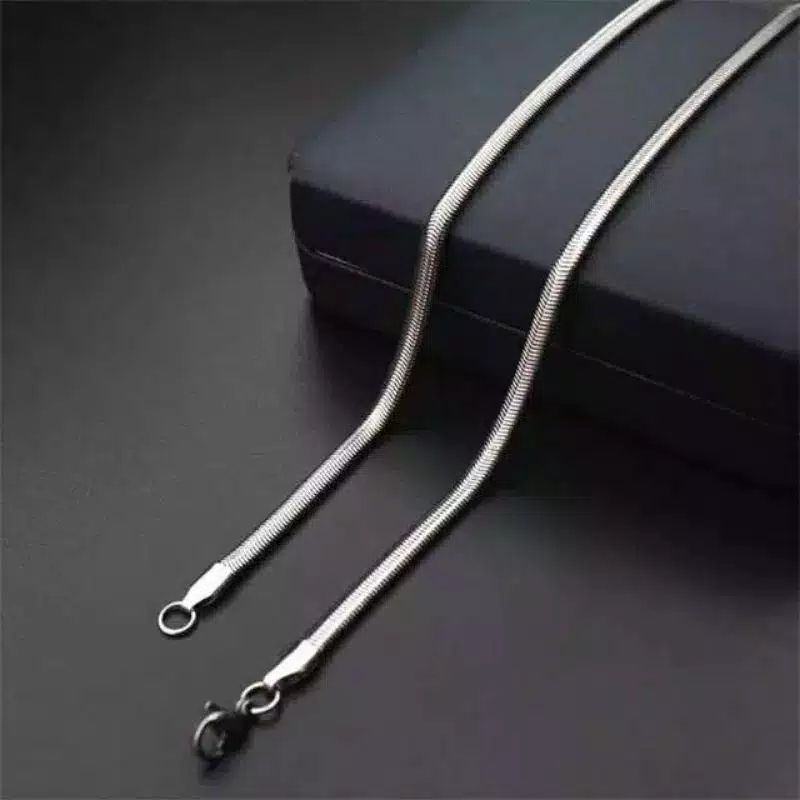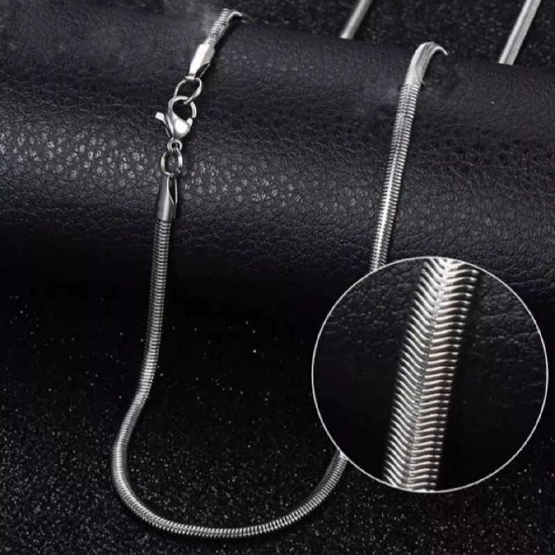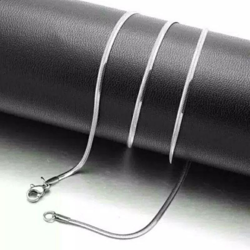 KALUNG TITANIUM PRIA PIPIH SILVER TIDAK BERKARAT BAGUS