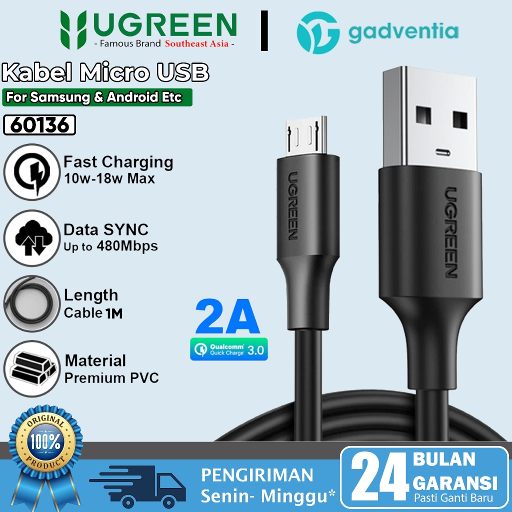 UGREEN Kabel Charger Micro USB Cable Data Fast Charging 20Cm 1M 2M 3M Premium Braided Max 18w QC3.0 Huawei Samsung Nokia