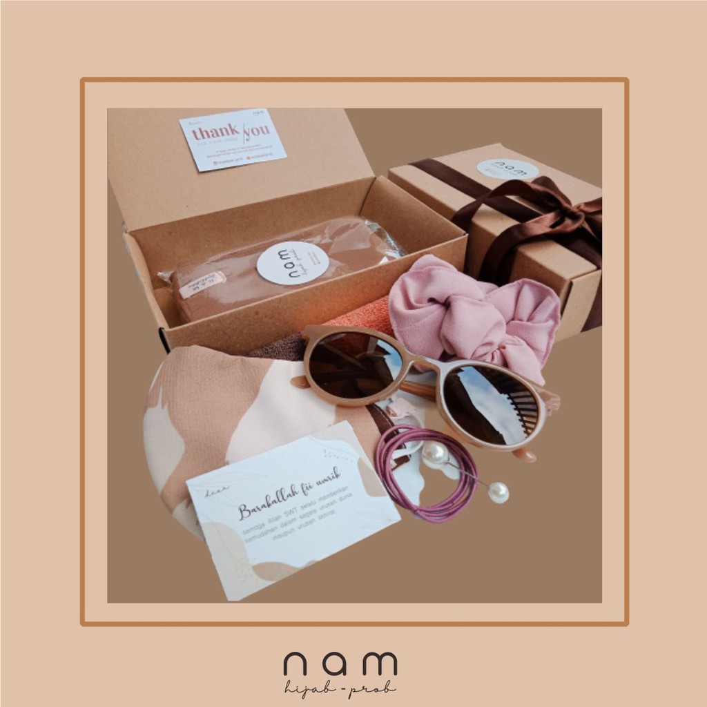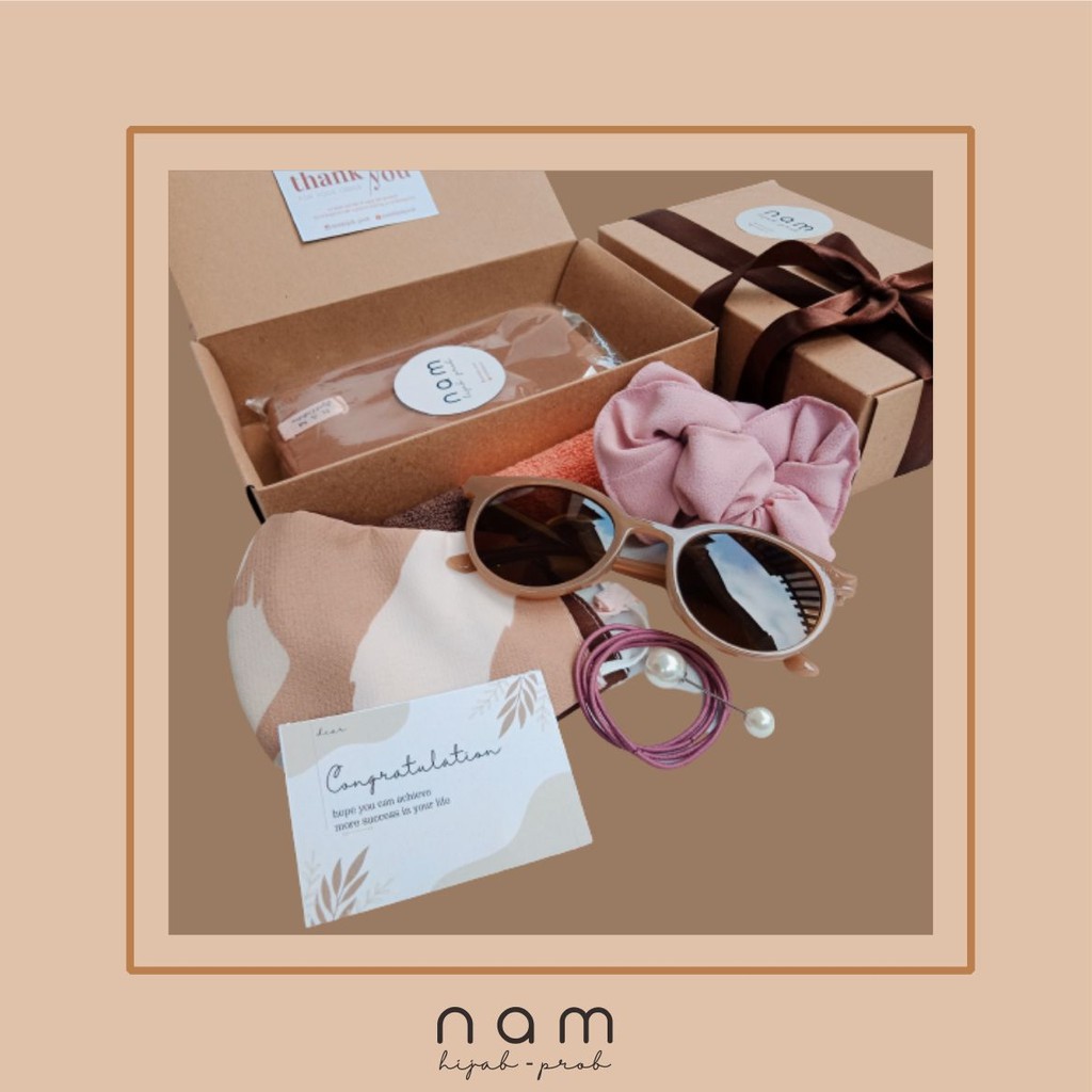 Box Of Happines A1 - (Pasmina + Masker Hijab + Kacamata) / Kado Hijab/Kado Sidang/Hampers