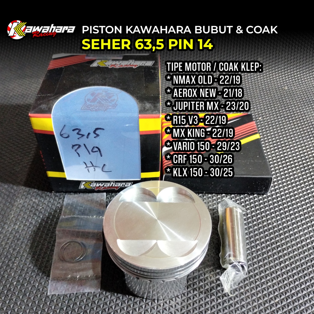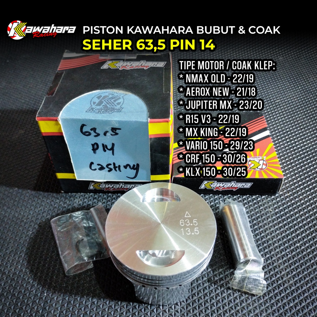 Paket Seher Kawahara 63,5 Pen Pin 14 Plus Bubut dan Coak Klep Piston Custom Bubut dan Cowak Klep Kompresi Tinggi Bisa Rekues, Seher Boreup Nmax Aerox Jupiter MX MX King R15 V3 KLX 150 Vario 150 CRF 150 - Piston Kawahara Racing Coak