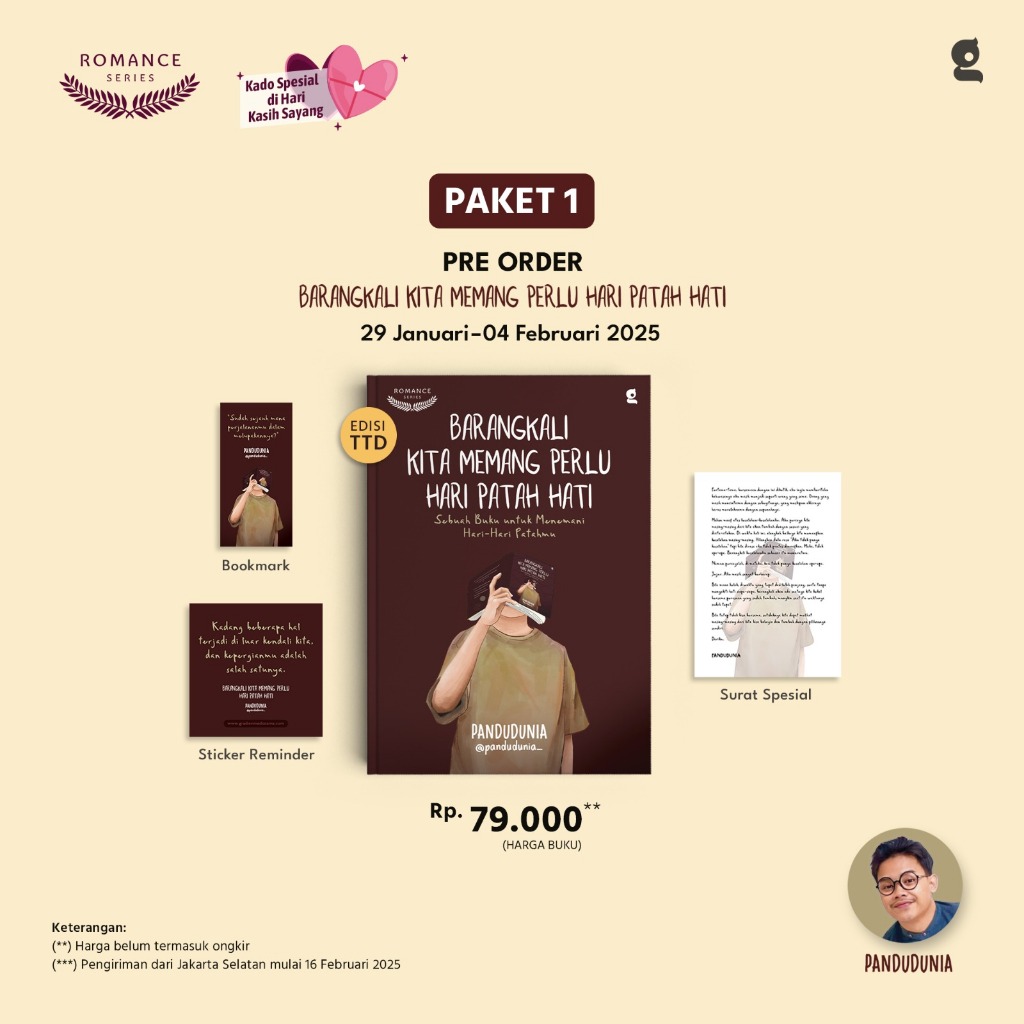 Pre Order - Buku Novel - Barangkali Kita Memang Perlu Hari Patah Hati - Pandudunia - Gradien - Bumifiksi