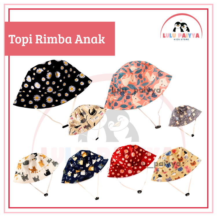 LULU PAIYYA | TP35 Topi Rimba Bucket Usia 3-7 Tahun Bahan Canvas Tebal Karakter / Topi Anak Kuromi Bahan Kanvas Tebal / Topi Anak Karakter / Topi Anak Variasi Bunga