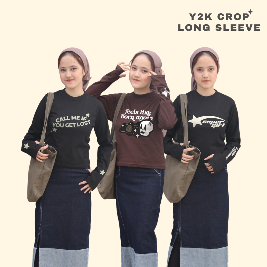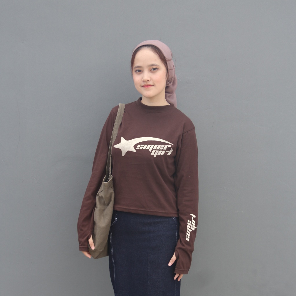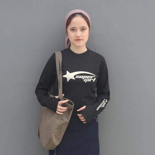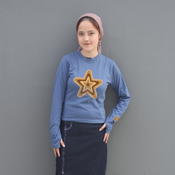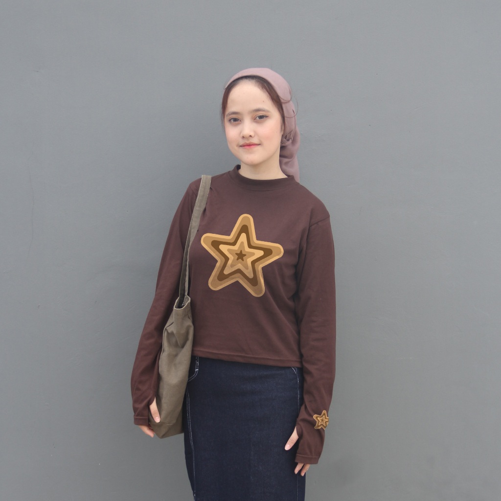 Anaira Kaos y2k crop Lengan Panjang bintang tshirt longsleeve kaos star bintang