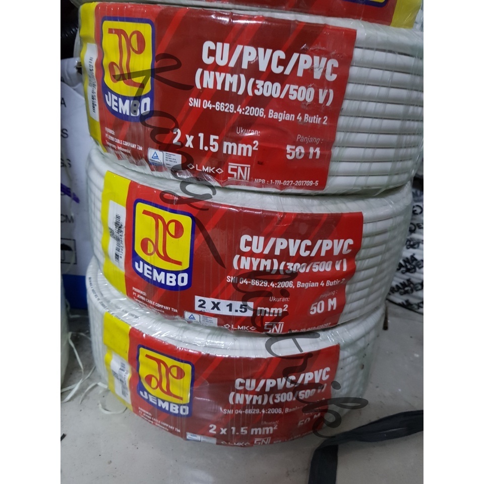 Kabel Listrik / Kabel Jembo KABEL METAL INDONESIA NYM 2x1.5mm / Kabel Listrik NYM JEMBO NYM kabelmetal 2x1,5mm Per Roll 50M