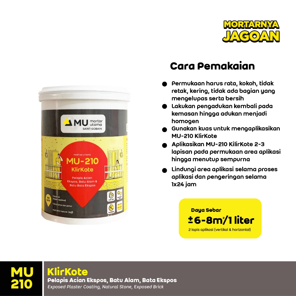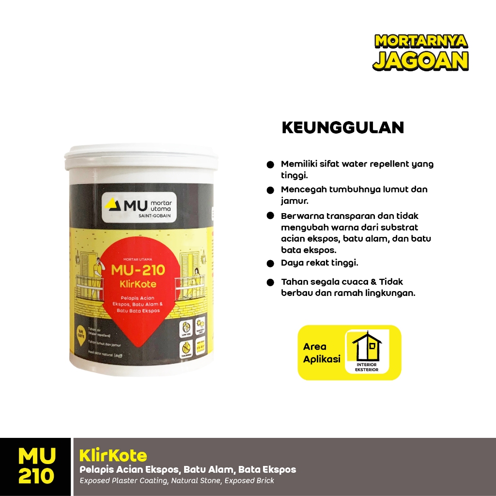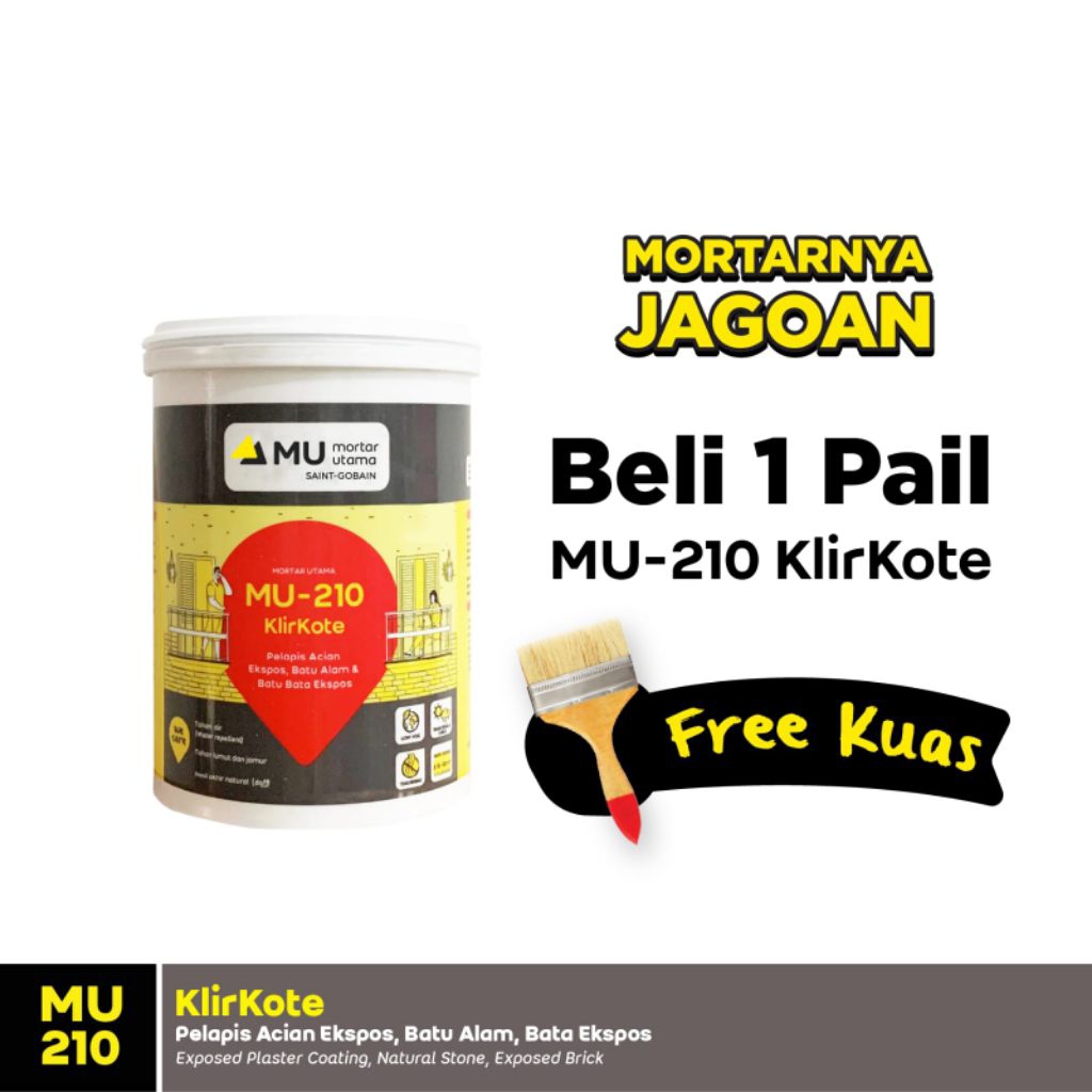 Mortar Utama Weber MU-210 Klirkote Pelapis Acian Ekspos 1 Liter Free Kuas