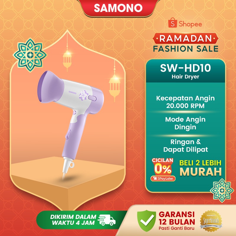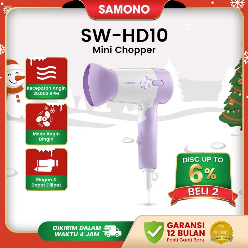 Samono Hair Dryer Pengering Rambut Low Watt 300 Watt 2 Kecepatan Angin Bisa Dilipat SW-HD10