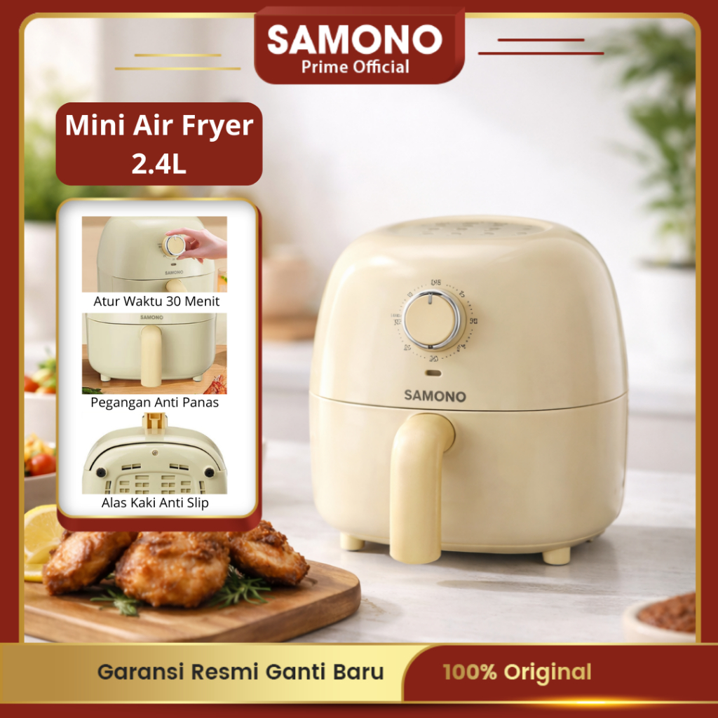 SAMONO Air Fryer Low Watt Compact 2.4 Liter Menggoreng Tanpa Minyak Garansi Resmi 1 Tahun SW-AFG24