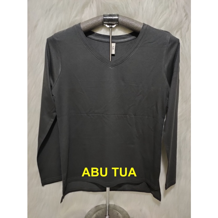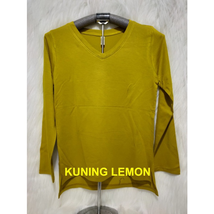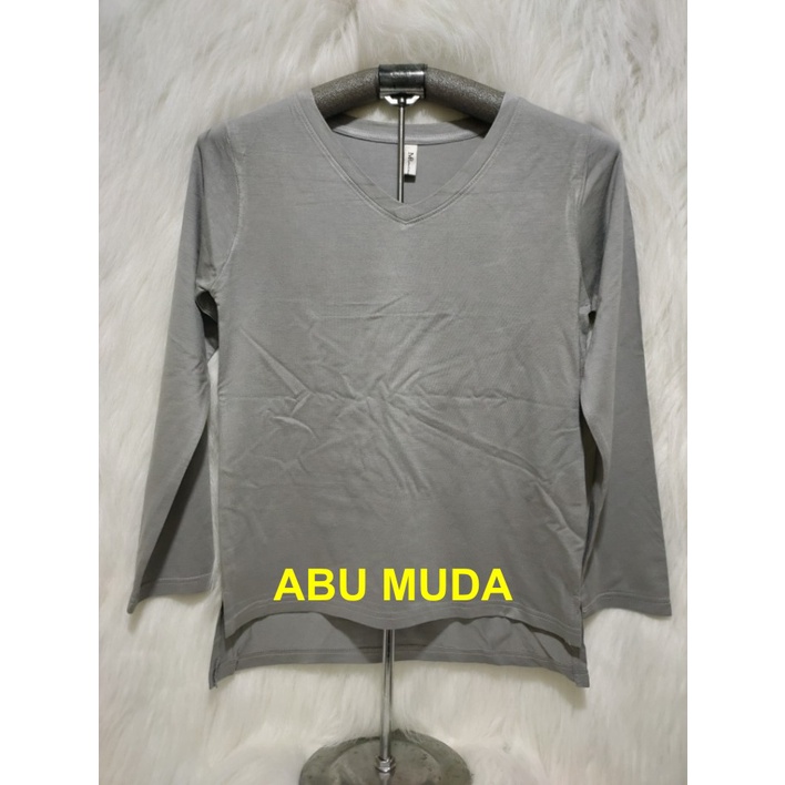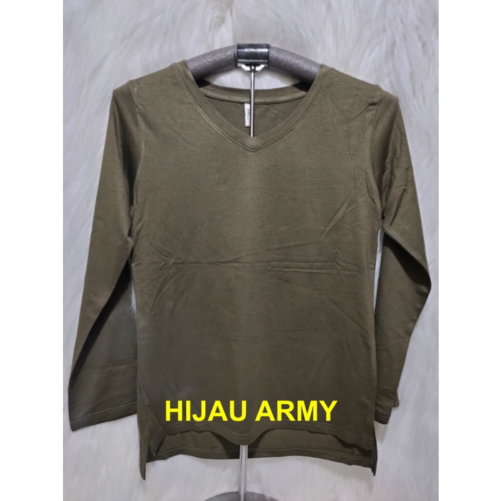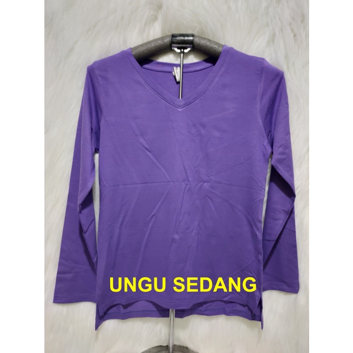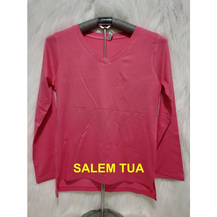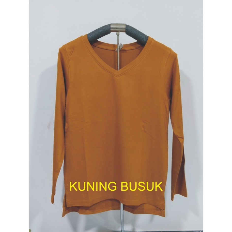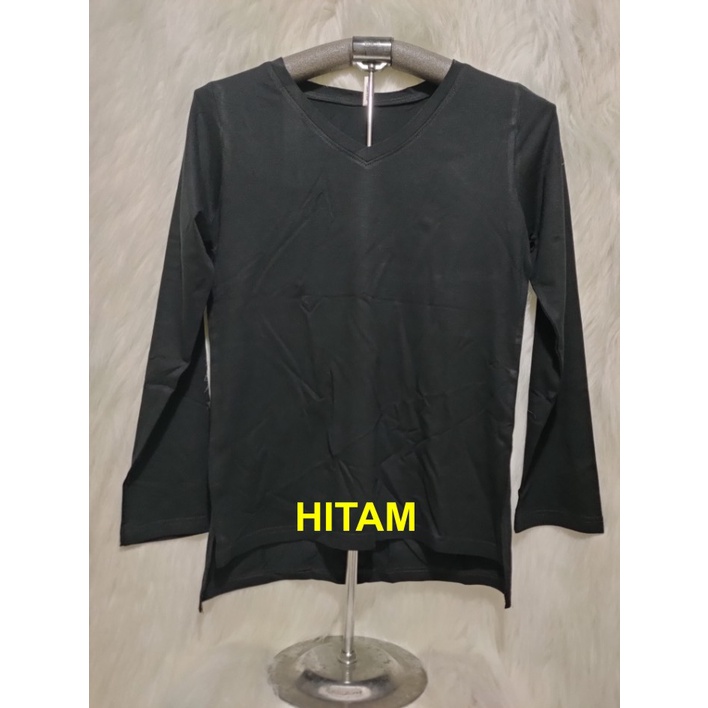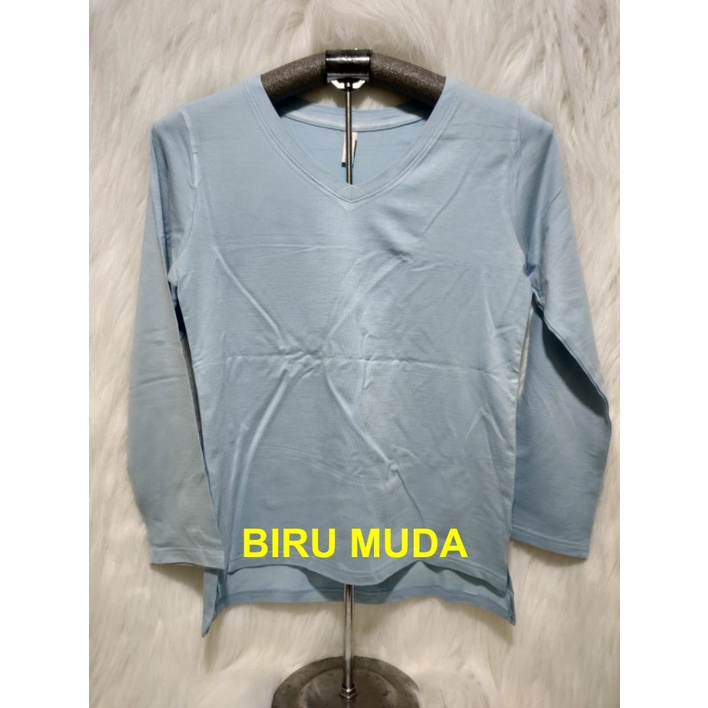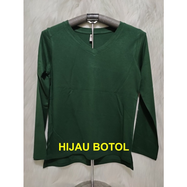 Kaos Wanita Lengan Panjang V-Neck Polos Atasan Wanita/Leher V Polasan Spandex Adem Grosir Murah