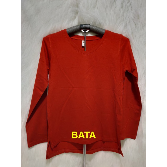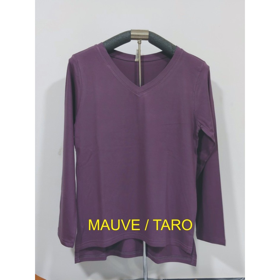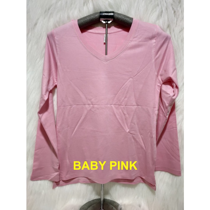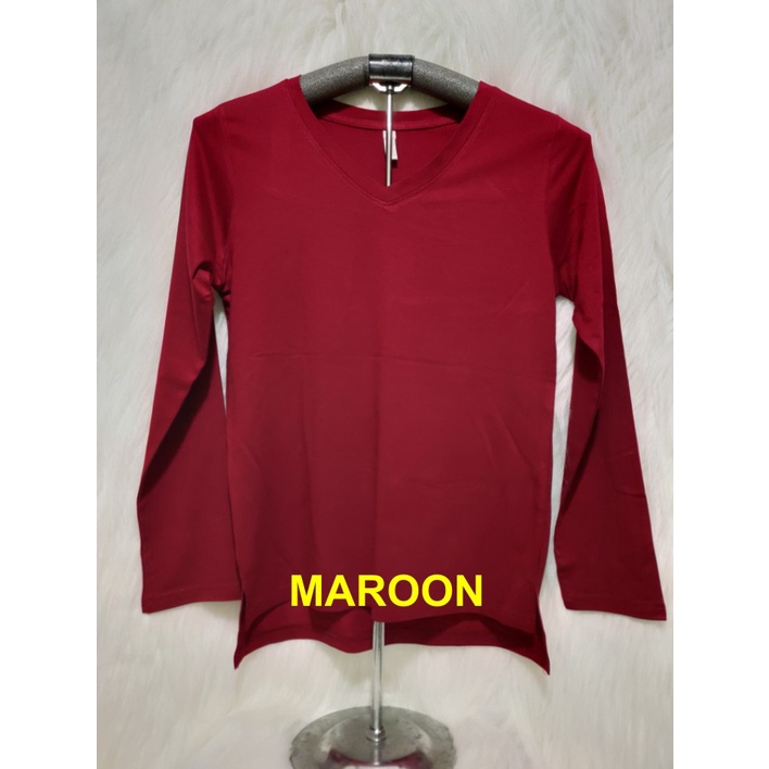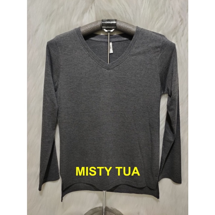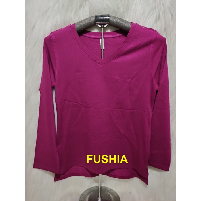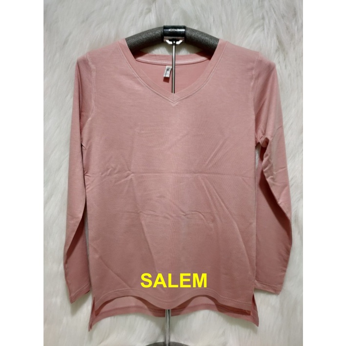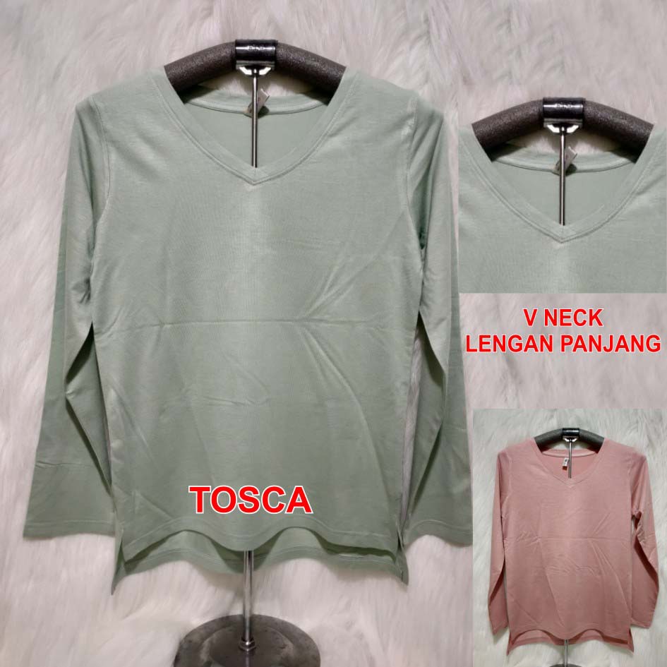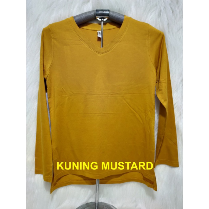 Kaos Wanita Lengan Panjang V-Neck Polos Atasan Wanita/Leher V Polasan Spandex Adem Grosir Murah