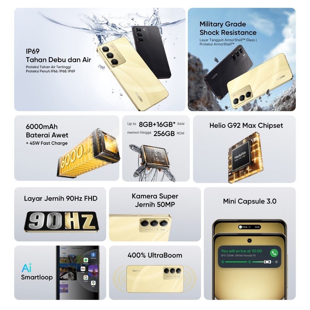 Realme C75 8+128GB/8+256GB - IP66/68/69 Dust & Water Resistance| Military Grade Shock Resistance | 6000mAh Massive Batery