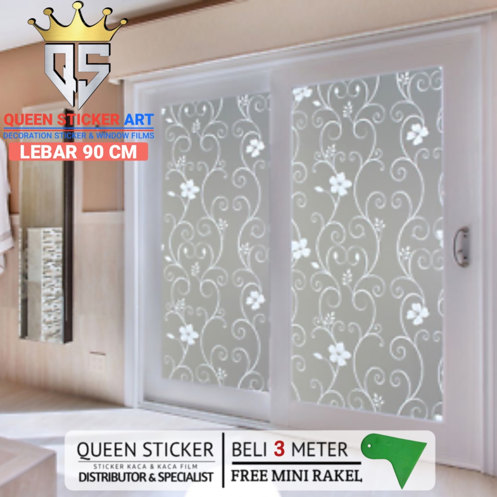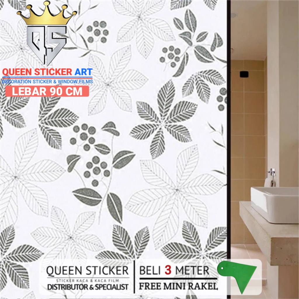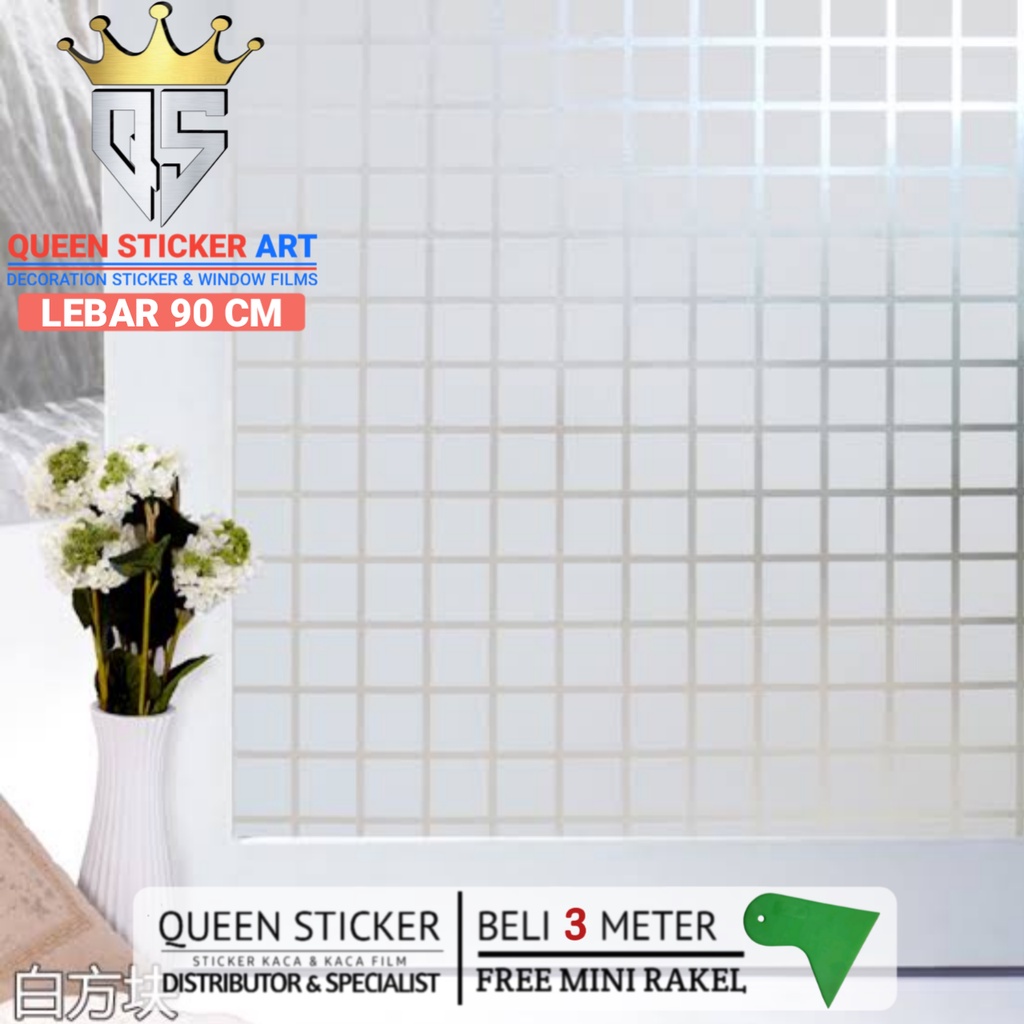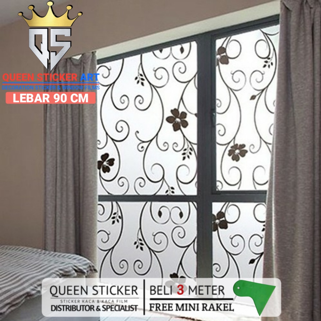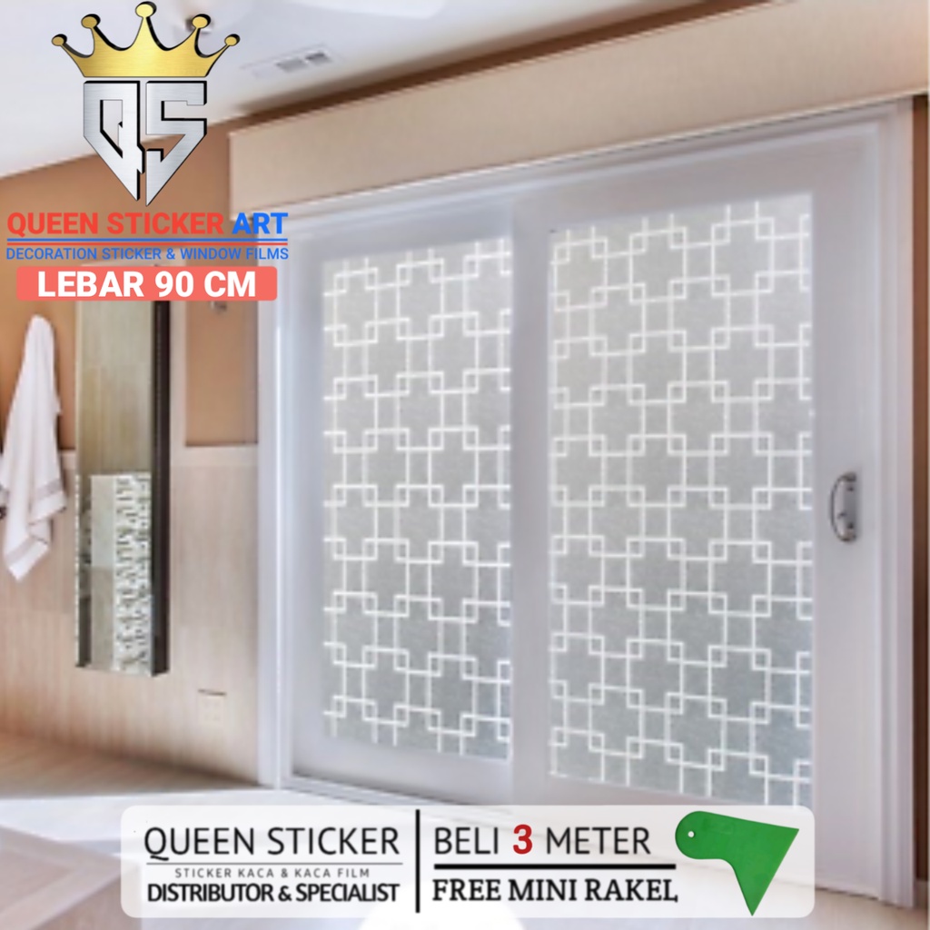 Stiker Kaca Film Jendela Rumah / Sandblast Polos / Sticker Kaca Motif Bunga Minimalis Kotak Ikan Dll / Dekorasi Jendela / Wallpaper Kaca L- 90 cm