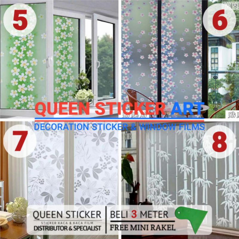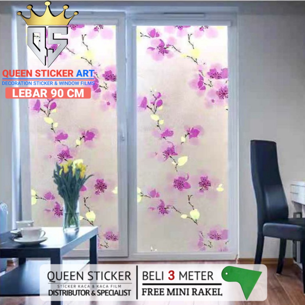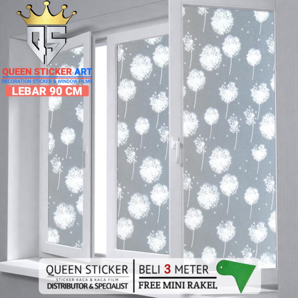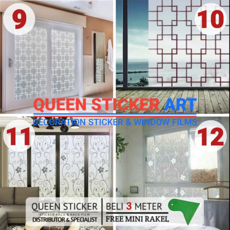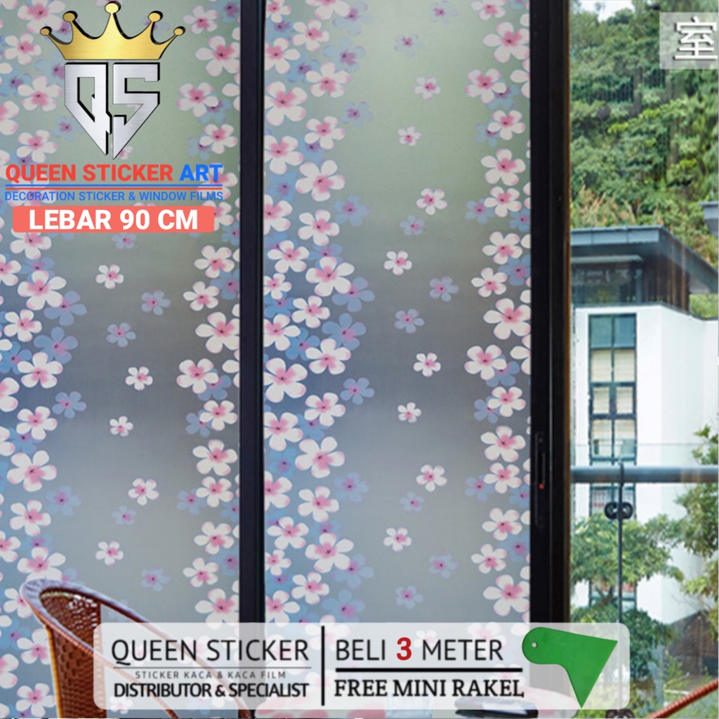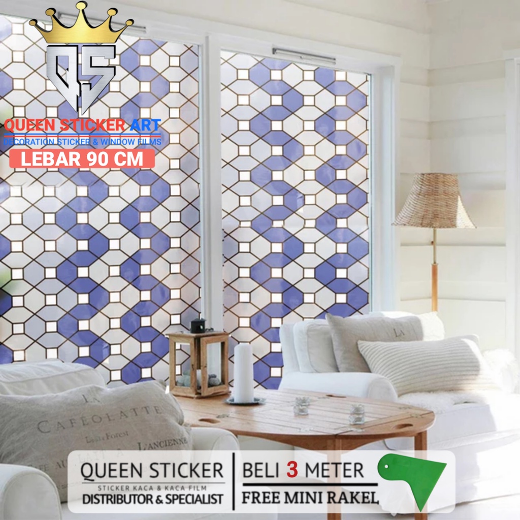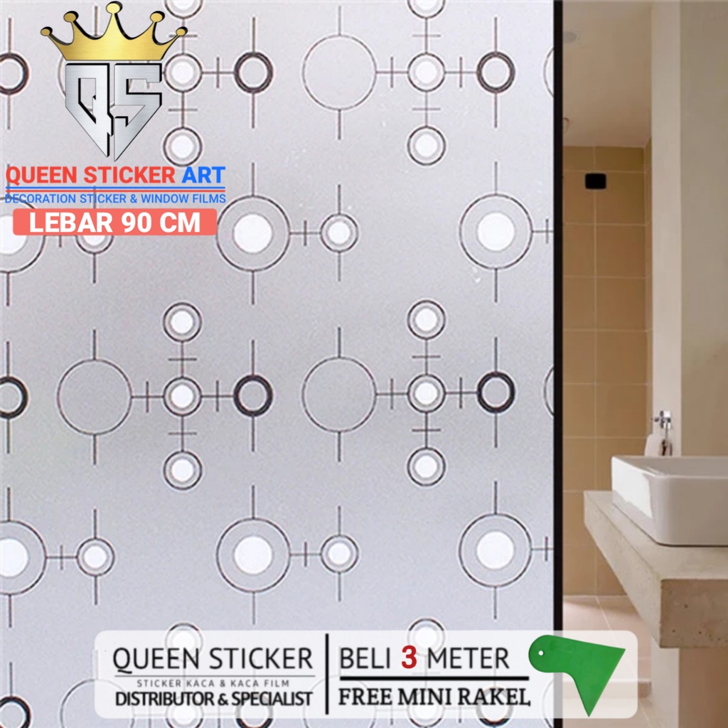 Stiker Kaca Film Jendela Rumah / Sandblast Polos / Sticker Kaca Motif Bunga Minimalis Kotak Ikan Dll / Dekorasi Jendela / Wallpaper Kaca L- 90 cm