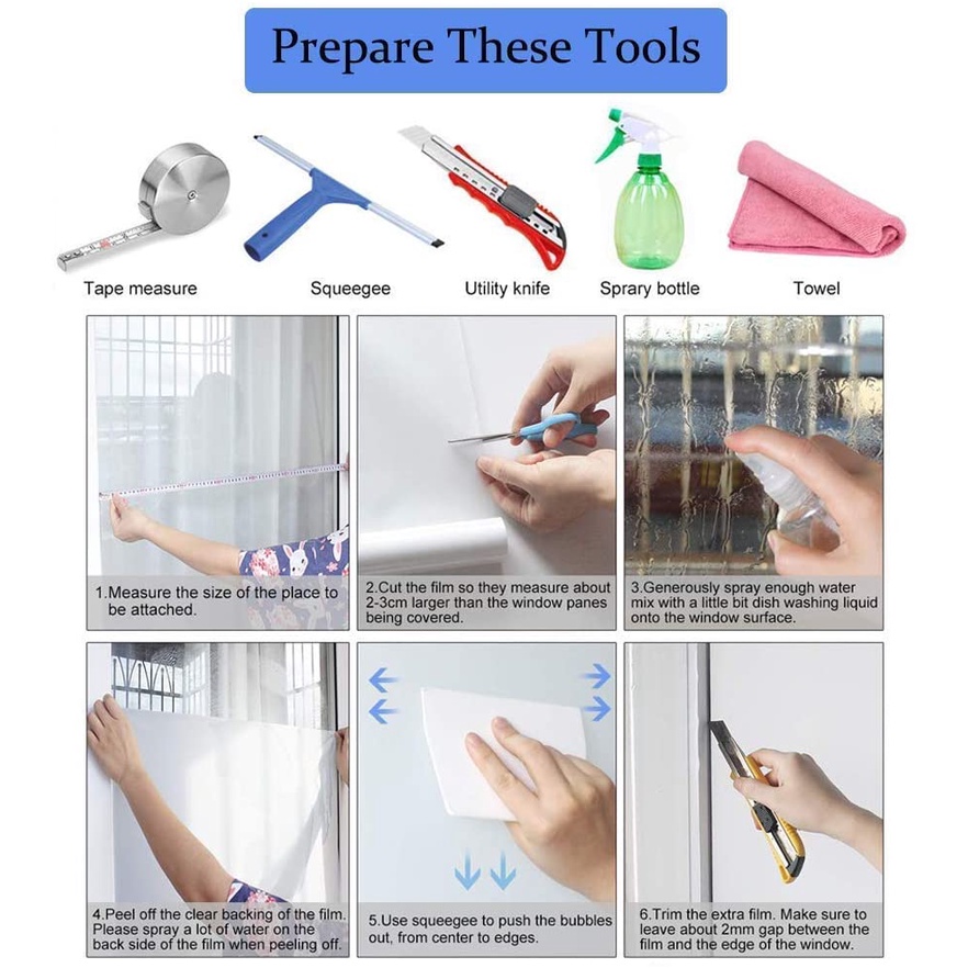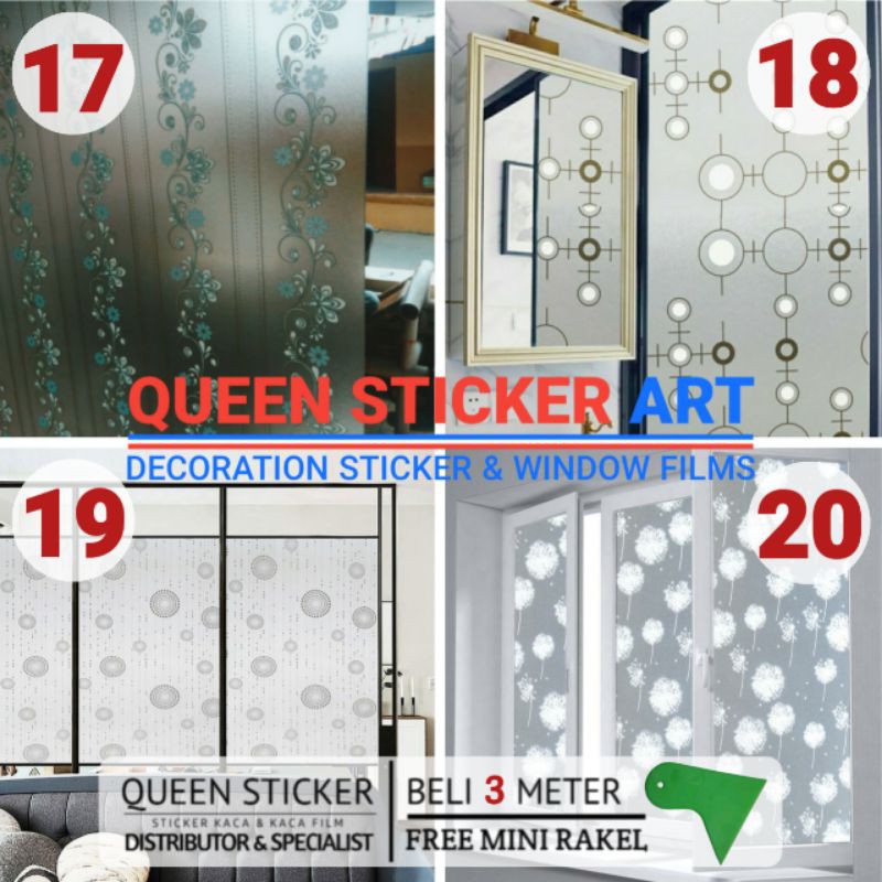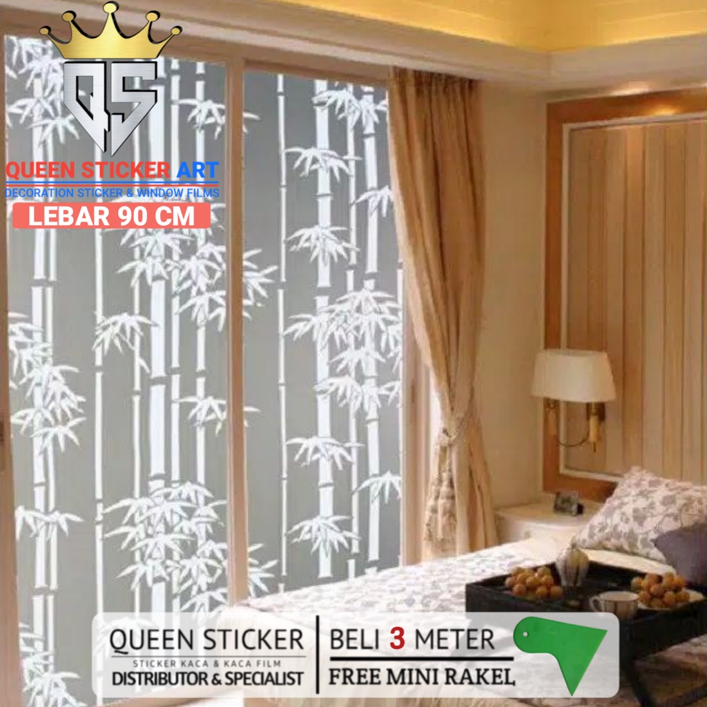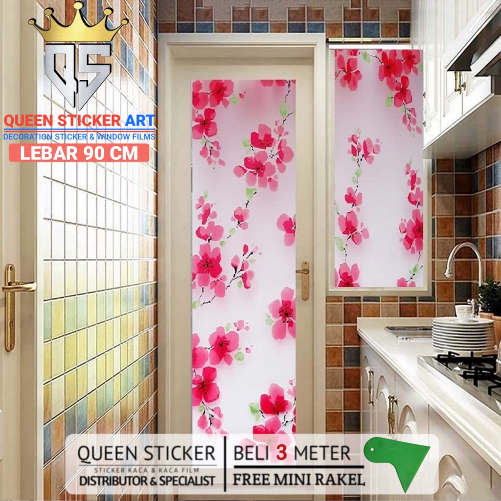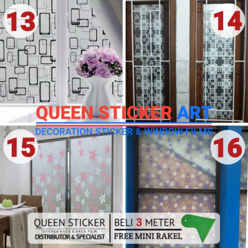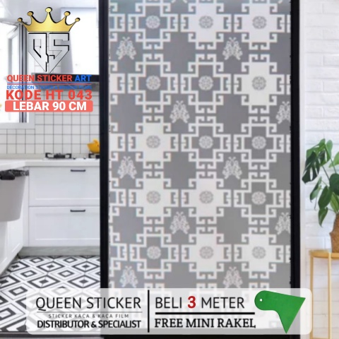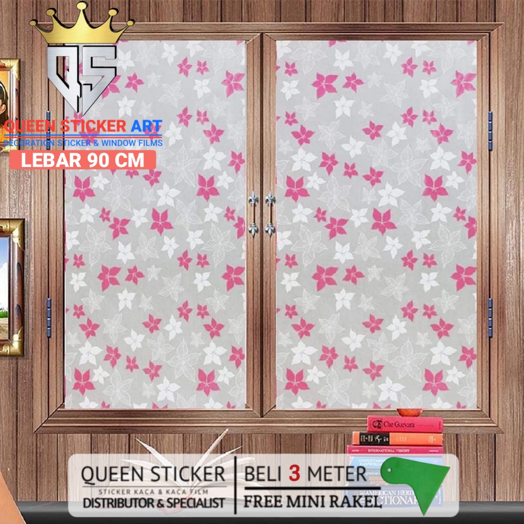 Stiker Kaca Film Jendela Rumah / Sandblast Polos / Sticker Kaca Motif Bunga Minimalis Kotak Ikan Dll / Dekorasi Jendela / Wallpaper Kaca L- 90 cm