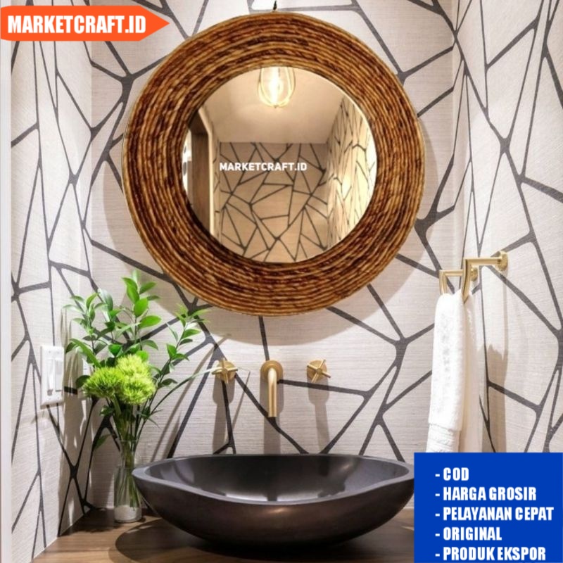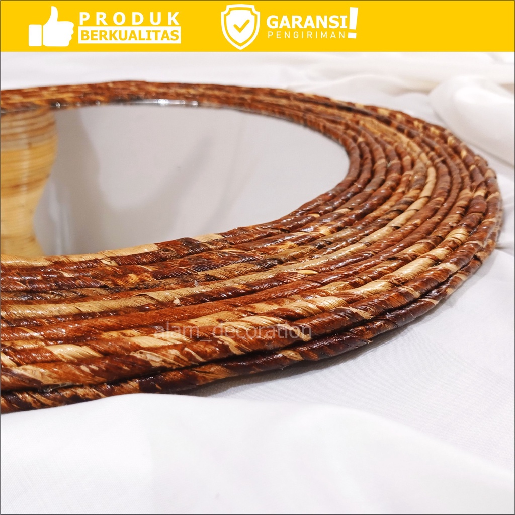 Cermin dinding aesthetic/Cermin bulat rustik/Cermin anyaman/Dekorasi dinding/Kaca bulat aesthetic