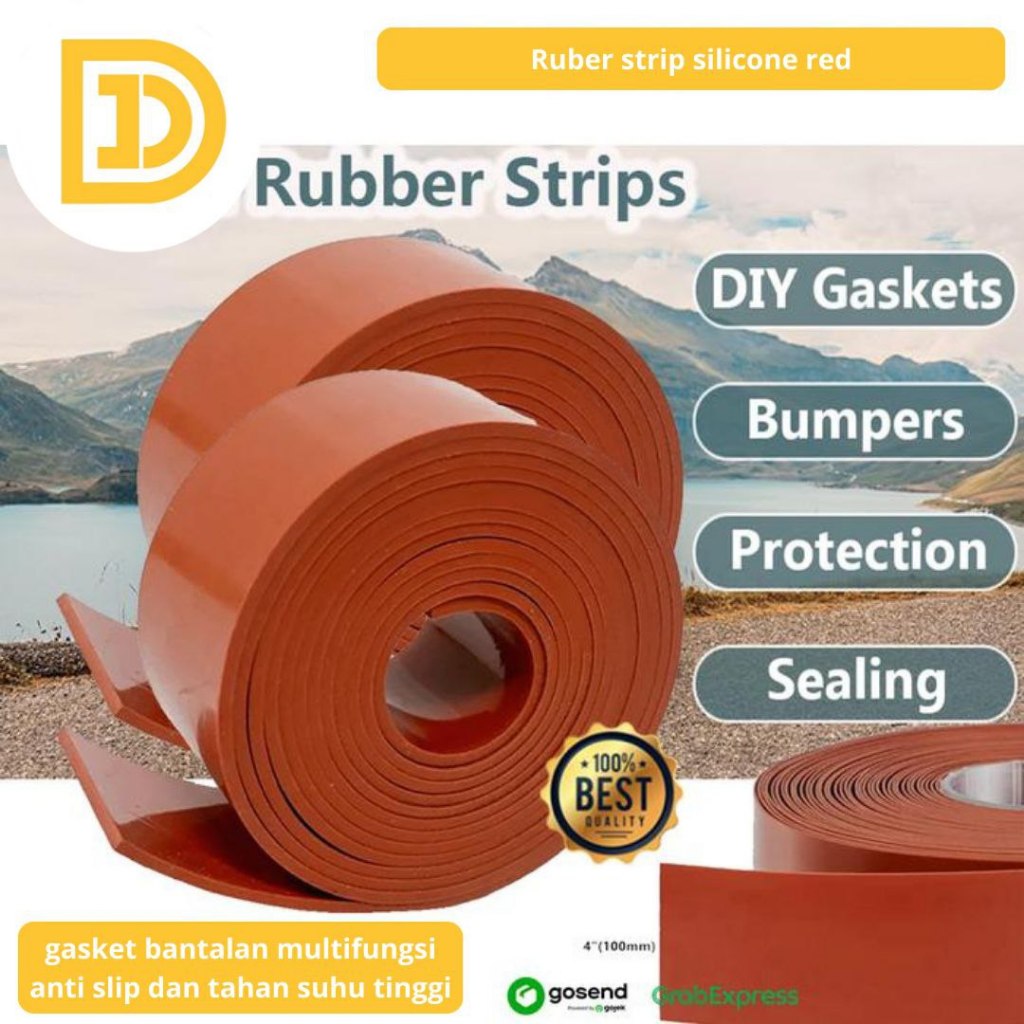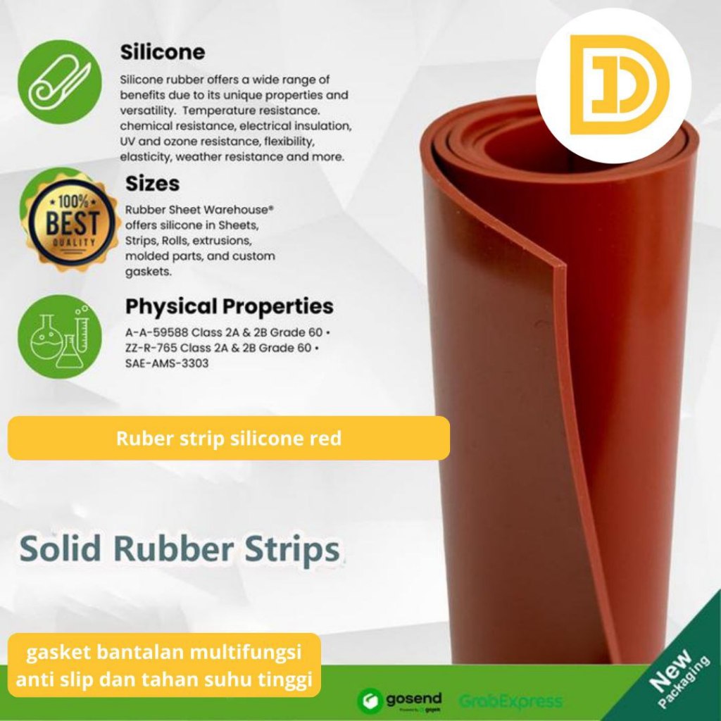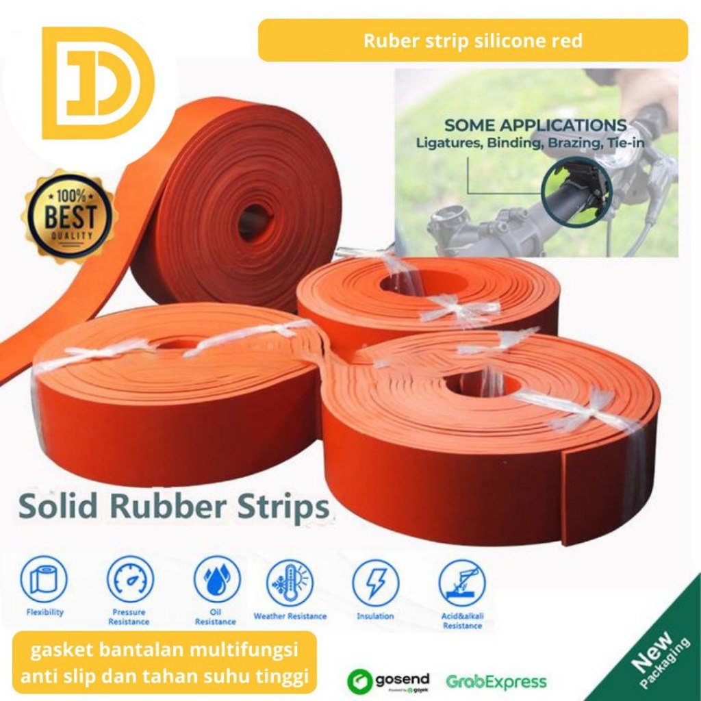 Rubber Strip Silicone Red Tebal 5 mm Karet Meteran Silikon Anti Slip Tahan Panas Merah Fleksibel Tanpa Perekat Lebar 2cm - 10cm Gasket Seal Segel Bantalan Bumper Alas Furniture dll
