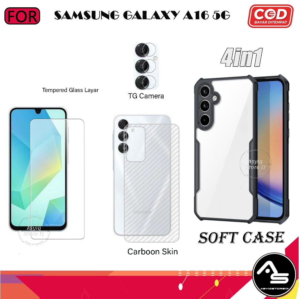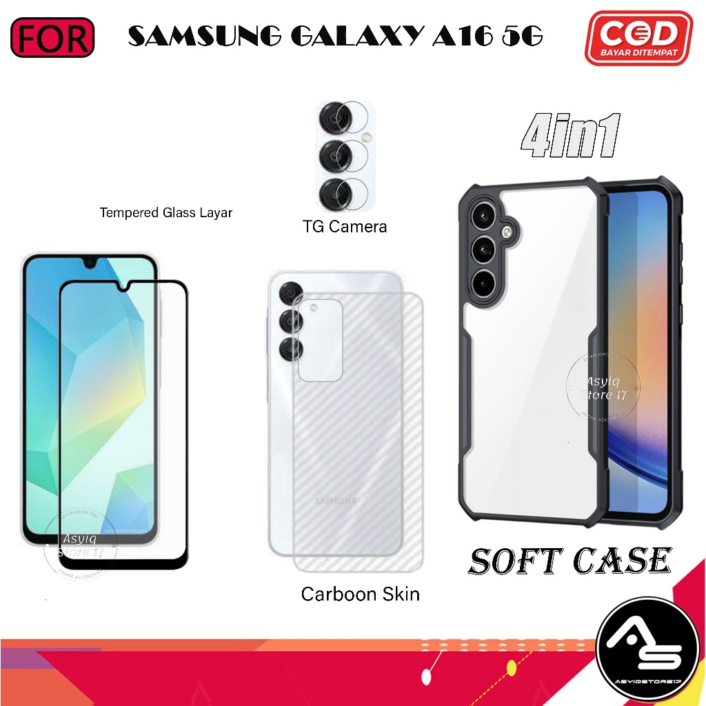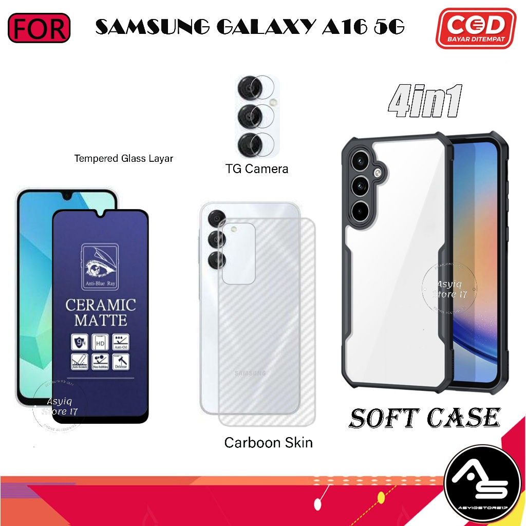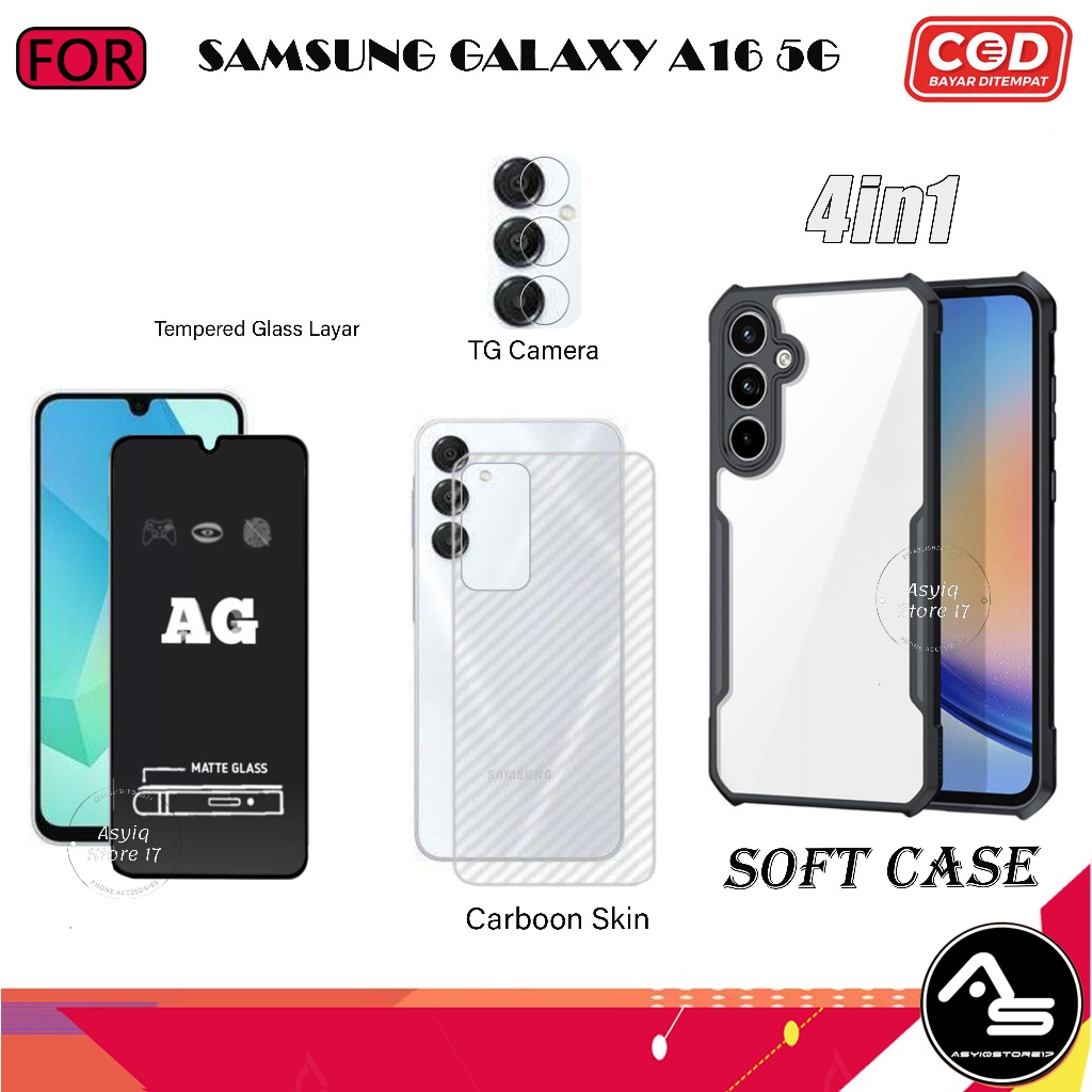 Paket 4in1 Case Tempered Glas AG Samsung Galaxy A16 5G Softcase Transparan Camera Protect Casing