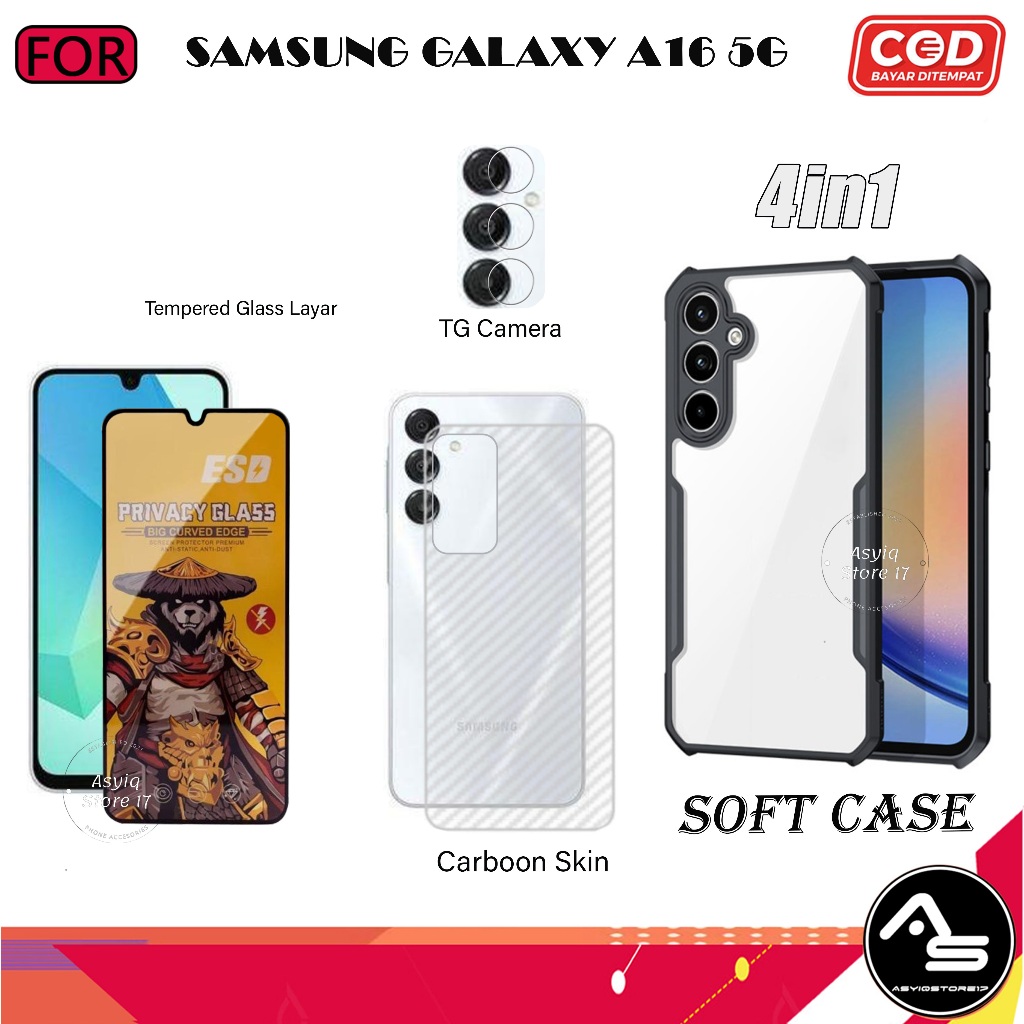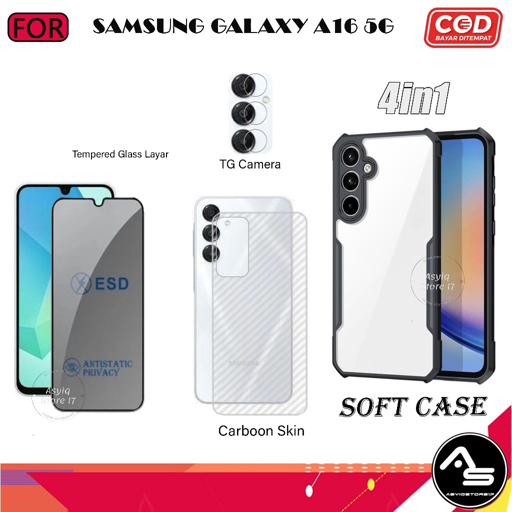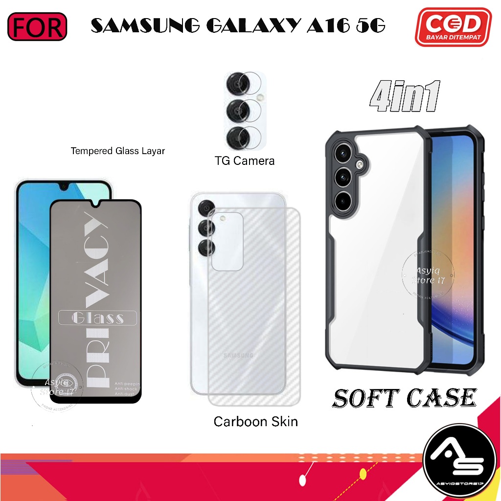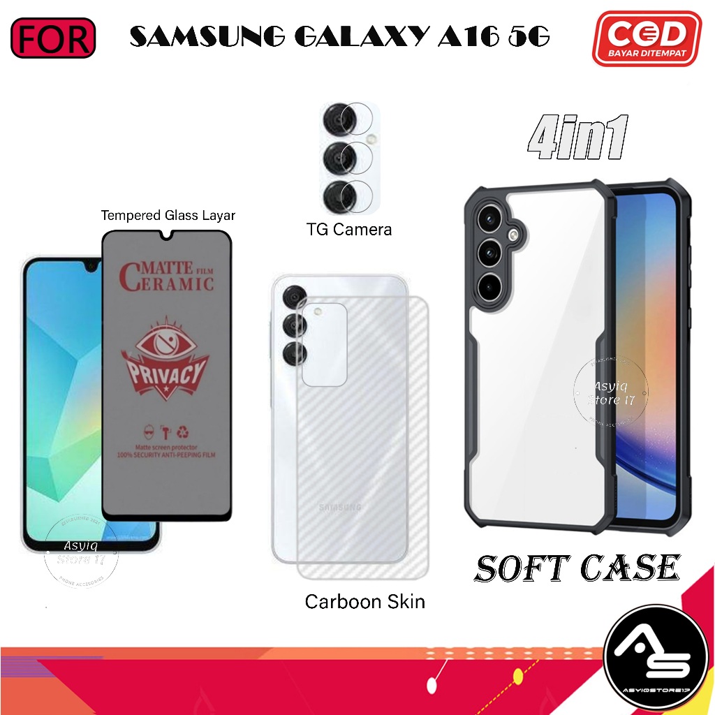Paket 4in1 Case Tempered Glas AG Samsung Galaxy A16 5G Softcase Transparan Camera Protect Casing